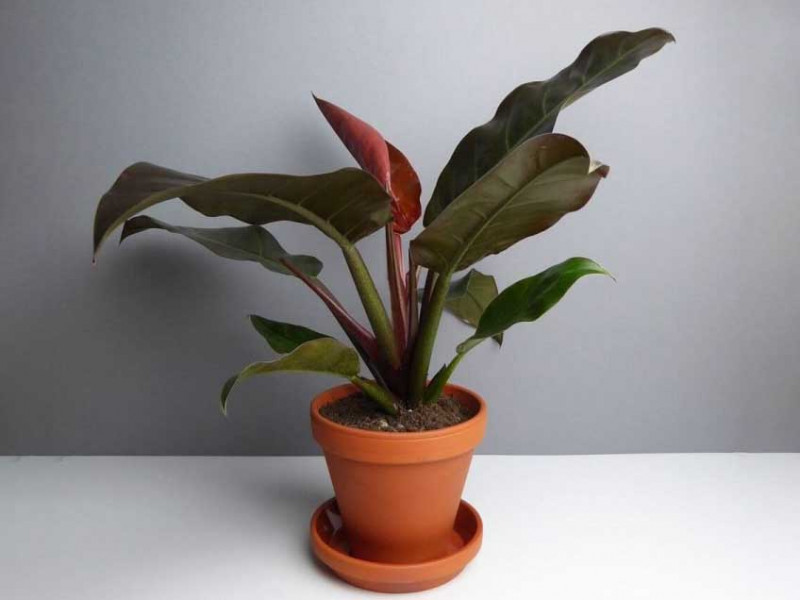 Cây Trầu Bà Đế Vương Đỏ là cây có phần lá lớn, thuôn nhọn. Lá non có màu đỏ tía. Lá già có màu lục tía. Cuống lá có màu tía thẫm. Khi chọn cây phong thủy để bàn làm việc, bạn nên chọn cây có màu lá đậm để thay đổi sinh khí cho căn phòng của bạn. Bên cạnh đó, người mệnh Hỏa nên sử dụng cây Trầu Bà Đế Vương Đỏ để thể hiện uy quyền của mình. Cây này cũng phù hợp cho những người làm lãnh đạo, quản lý.