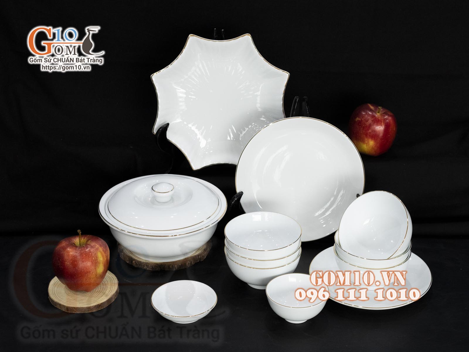 Dòng men trắng luôn được ưa chuộng bởi tính phổ biến và dễ dàng bày biện, phù hợp trong mọi không gian sống. Màu trắng sạch đẹp, bóng mịn sang trọng, hơn nữa màu trắng thể hiện sự tinh khiết gắn liền với câu tục ngữ “bát sạch ngon cơm” hơn cả. Các món ăn với nhiều màu sắc được bày biện trên những chiếc bát đĩa càng tăng thêm vẻ đẹp nổi bật và thêm đậm đà hương vị.