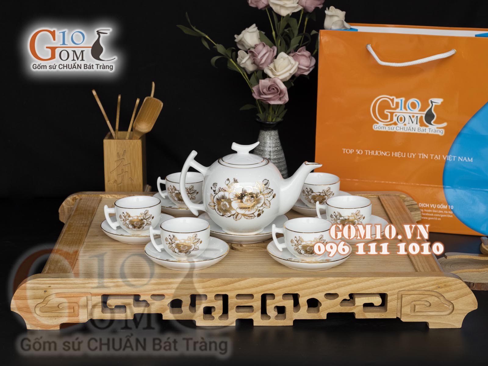 Bộ ấm chén men trắng Bát Tràng vẽ Vàng 24k. Mang nét đẹp thanh tao thuần khiết, bộ ấm trà men trắng sẽ góp phần tạo nên không gian tiếp khách sang trọng cho gia đình bạn.