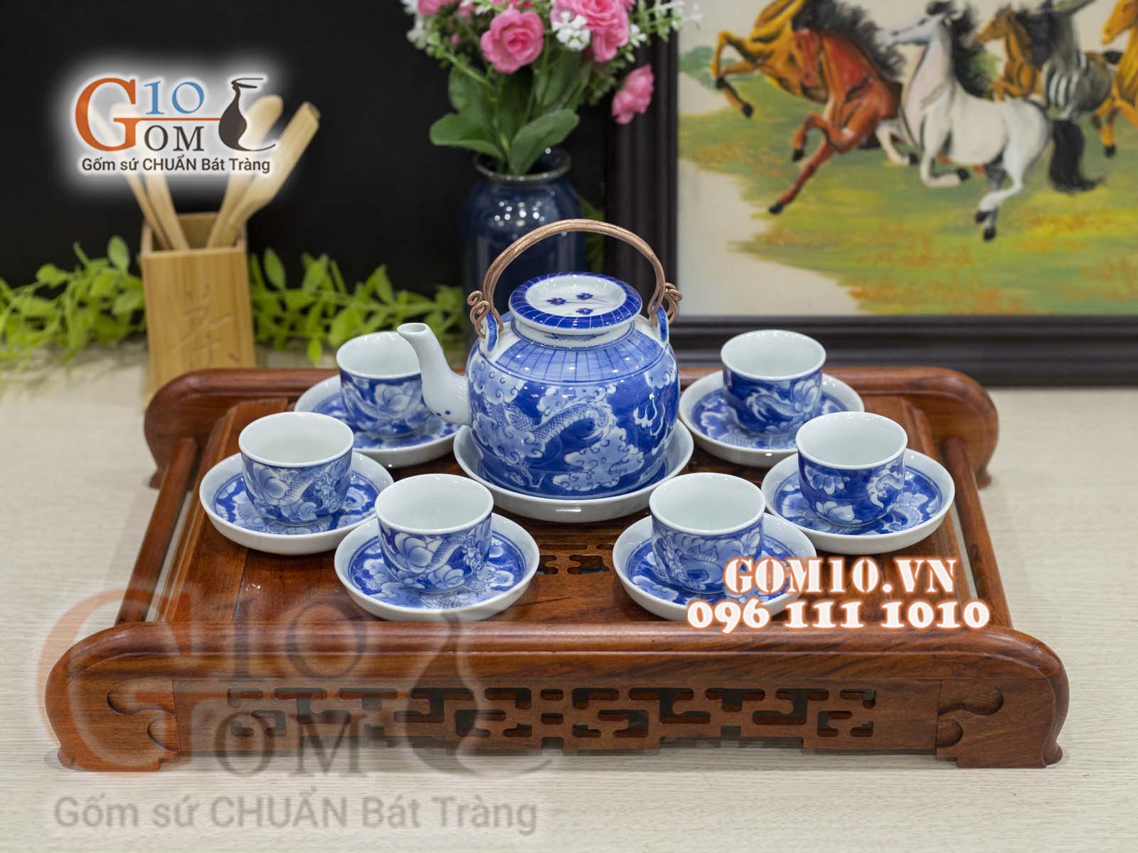 Bộ ấm chén bát tràng không chỉ thể hiện độ tinh xảo trong nét vẽ của người nghệ nhân, mà còn cả trong đất làm gốm, trong nước men.