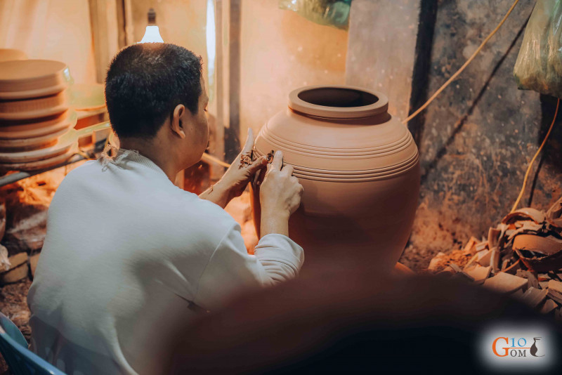 Hoa văn trên sản phẩm được làm hoàn toàn thủ công từ đôi bàn tay tài hoa của các nghệ nhân. Chúng được khắc chìm, khắc nổi hay hay vẽ lên với đường nét rất uyển chuyển và sinh động. Chum sành ngâm rượu Bát Tràng không chỉ có tác dụng làm đồ chứa đựng mà còn là vật trang trí giúp tôn lên vẻ đẹp phong thủy trong nhà.