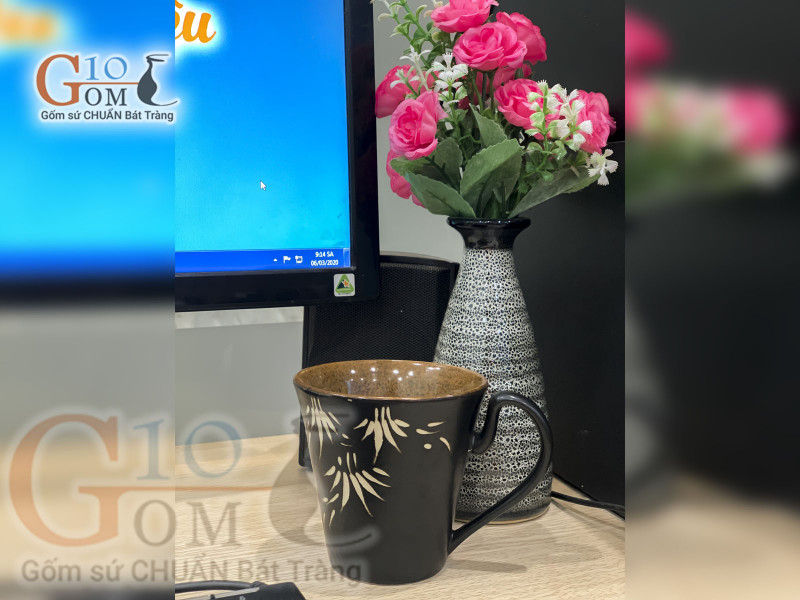 - Cốc uống nước văn phòng của Bát Tràng sở hữu lớp men sáng bóng, mịn mạng chống bám dính bề mặt. Không để lại các lớp dầu bám ở thành cốc và rất dễ dàng rửa sạch.
