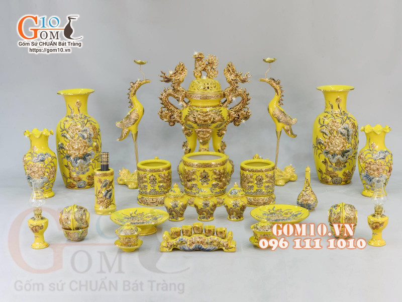 Chính vậy các mẫu đồ thờ vẽ vàng, dát vàng được rất nhiều gia đình có điều kiện quan tâm bởi sự chất lượng tới từ sản phẩm, sự tâm huyết tới từ từng nghệ nhân. Từng nét vàng được vô cùng cẩn thận vẽ lại trên mặt men của sản phẩm tôn nên vẻ đẹp cao quý của một bộ đồ thờ.