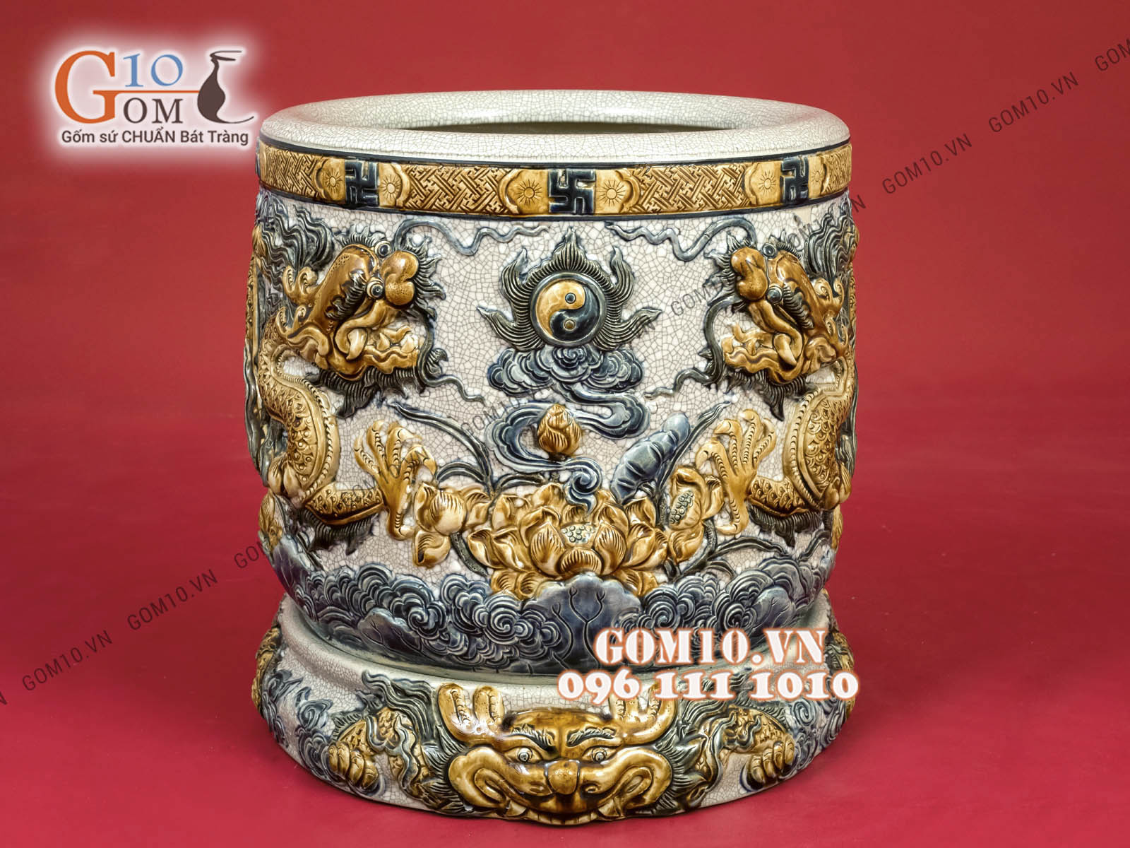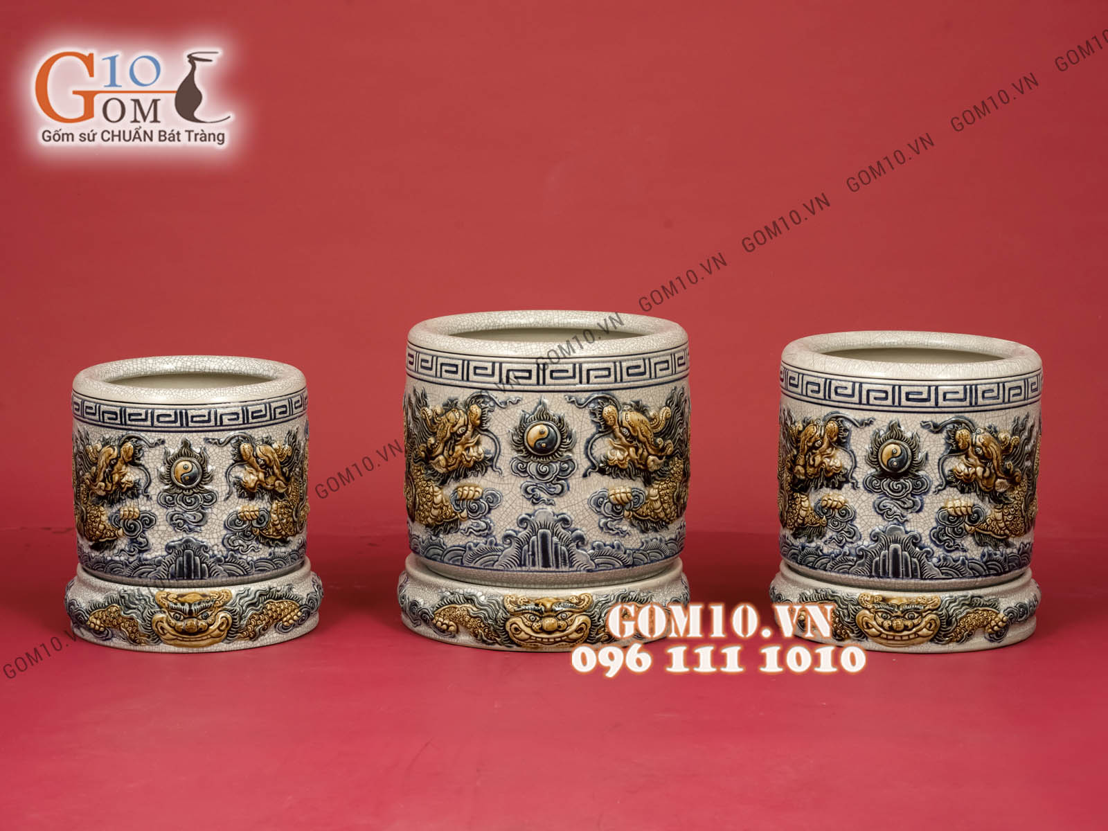 Bên cạnh đó, từng lớp hoa văn của bát hương gốm như rồng, phượng, hoa sen... được múa bút hoàn toàn thủ công. Do đó, họa tiết trên bát hương sẽ tồn tại mãi mãi như tấm lòng của con cháu dù ở đâu cũng luôn biết ơn nguồn cội.