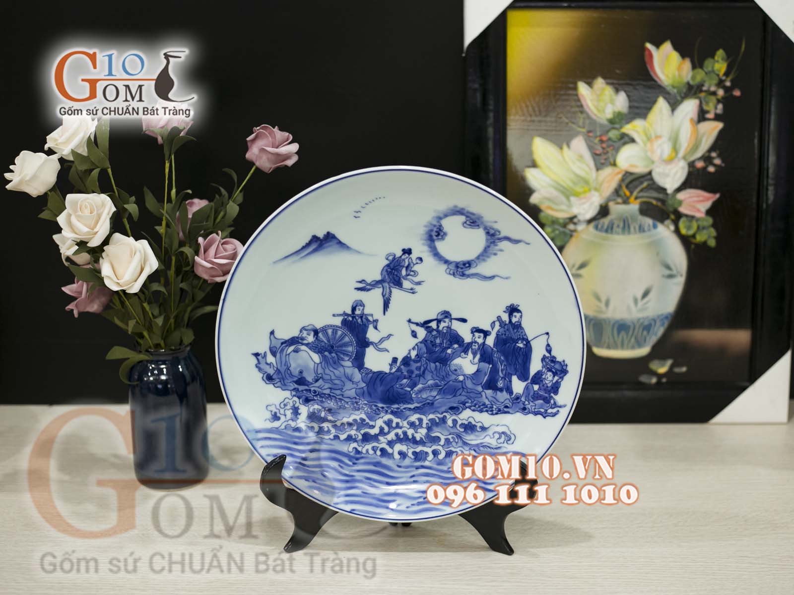 Ngoài đĩa sứ men lam hoạ tiết bát tiên cổ, tại Gốm 10 còn có nhiều mẫu đĩa sứ men lam với các hoạ tiết tinh xảo khác.