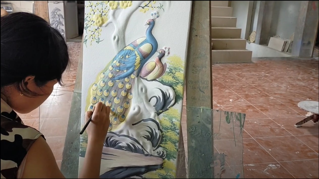 Điều đặc biệt của loại tranh này là nguyên liệu sản xuất từ đất gốm và đất cao lanh trắng, được nung ở nhiệt độ cao: 1200 độ C nên màu của tranh được lưu giữ lại mãi mãi.
