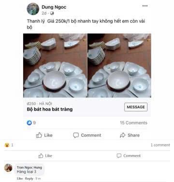 - Bộ bát 6 chiếc: nơi báo 120.000đ, chỗ lại rao 300.000đ