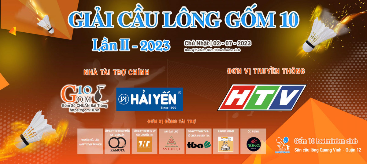 Thương hiệu Gốm sứ Bát Tràng - GỐM 10 và CLB Cầu Lông Gốm 10 tổ chức Giải Cầu Lông Gốm 10 mở rộng lần II năm 2023, Giải đấu đã được tổ chức tại sân cầu lông Quang Vinh (Q12, TP. HCM), quy tụ trên 300 VĐV đến từ các đơn vị và CLB tại TP.HCM.