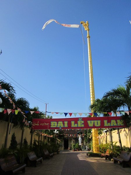 Lá cớ phướn được cho là tượng trưng cho con rắn tội lỗi Quạ tha xác rắn lên ngọn cây cho muôn loài soi gương mà ăn ở cho có nhân đức, đừng vô ân phản phúc." Từ đó hạc đứng chầu trên cao. Rùa đội chân con hạc. Quạ đậu trên cột phướn và lá phướn treo trước chùa là hiện thân xác rắn đang phơi mình cho mọi người trông vào đó mà tự răn lấy mình vậy.