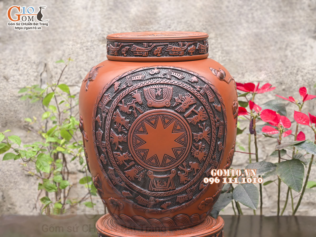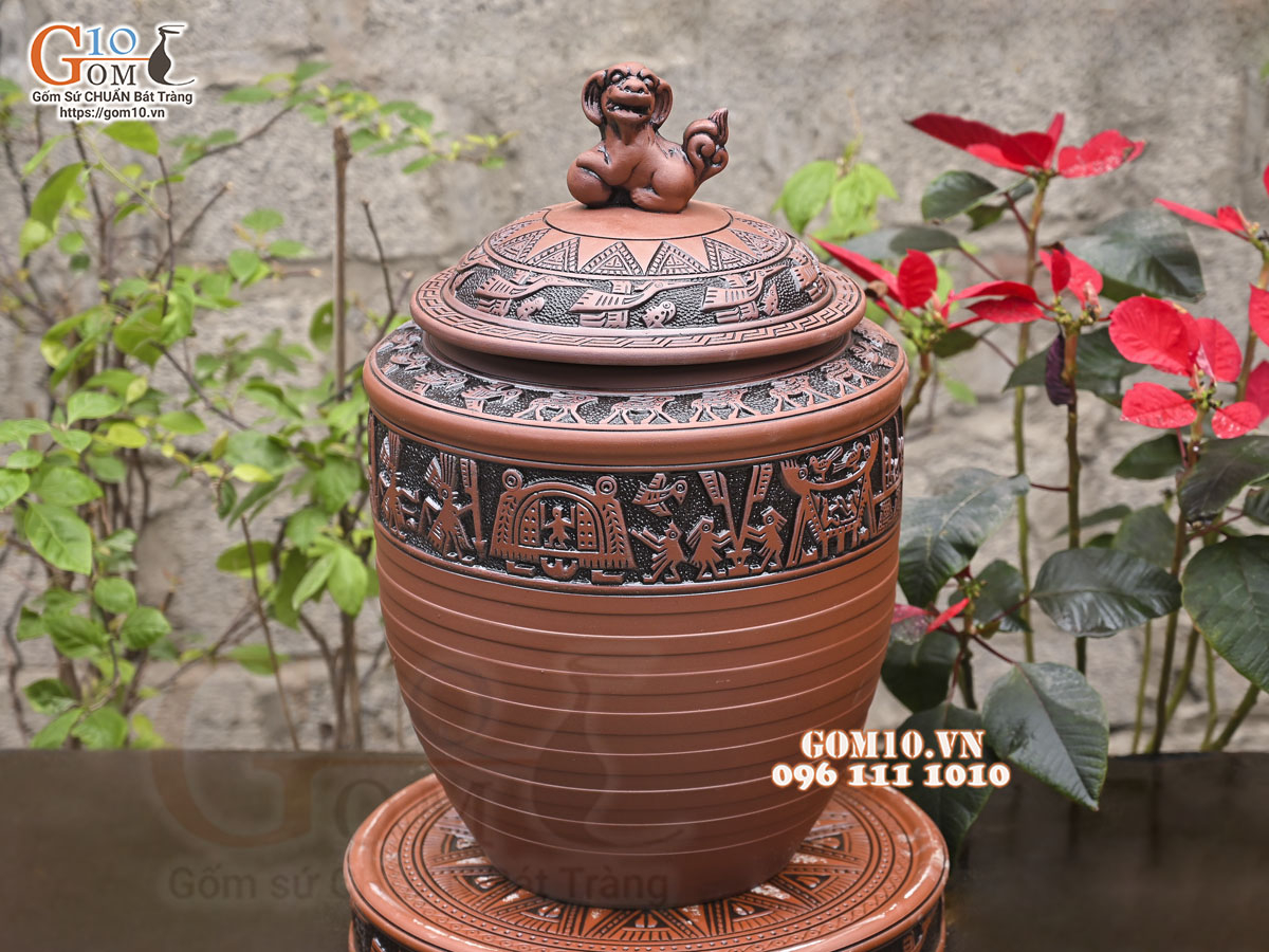 Không chỉ có tác dụng hạ thổ rượu, sự tinh tế đến từ hoa văn truyền thống giúp chum phù hợp ở mọi không gian, từ phòng làm việc, phòng khách, cho đến những không gian mở như sân vườn.