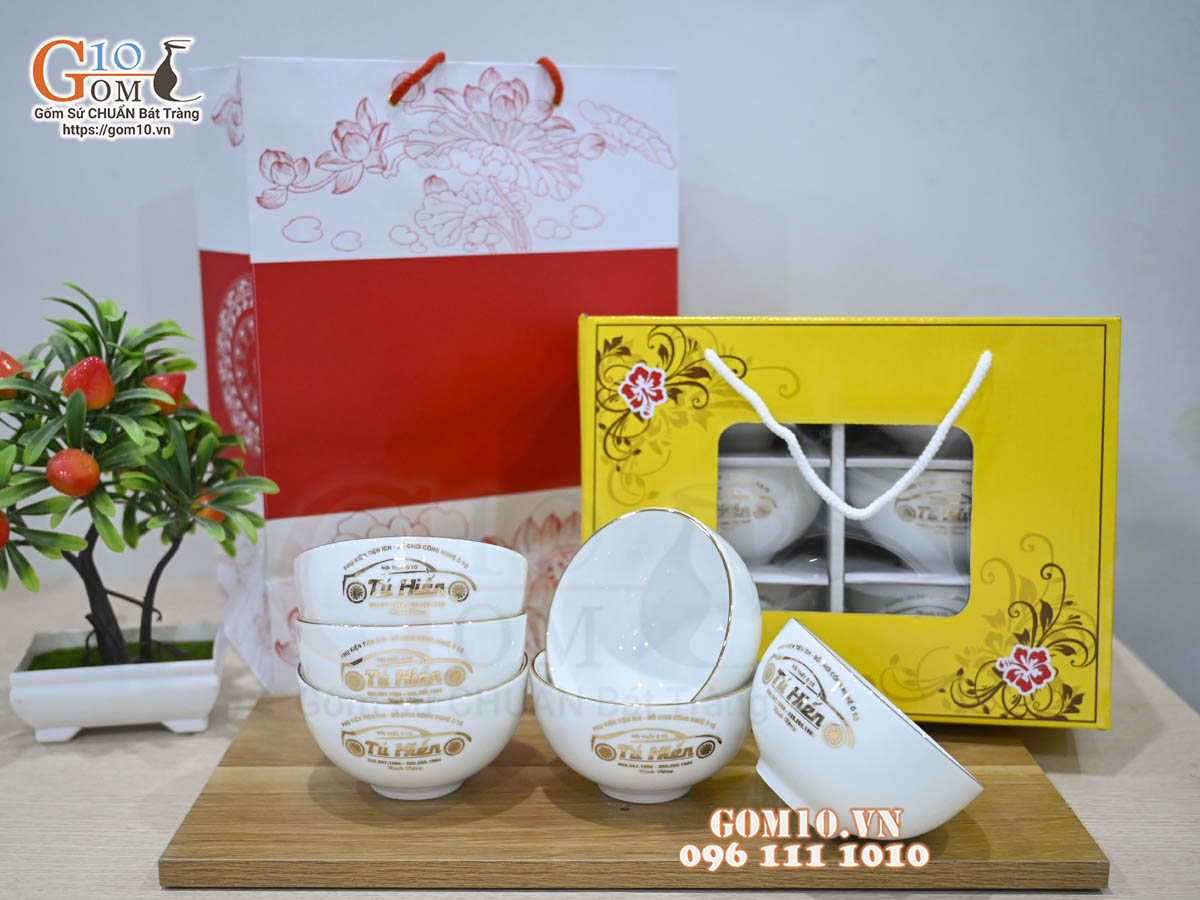 Hàng nghìn bộ bát cơm kẻ chỉ vàng - in logo quà tặng Ô tô Tú Hiến