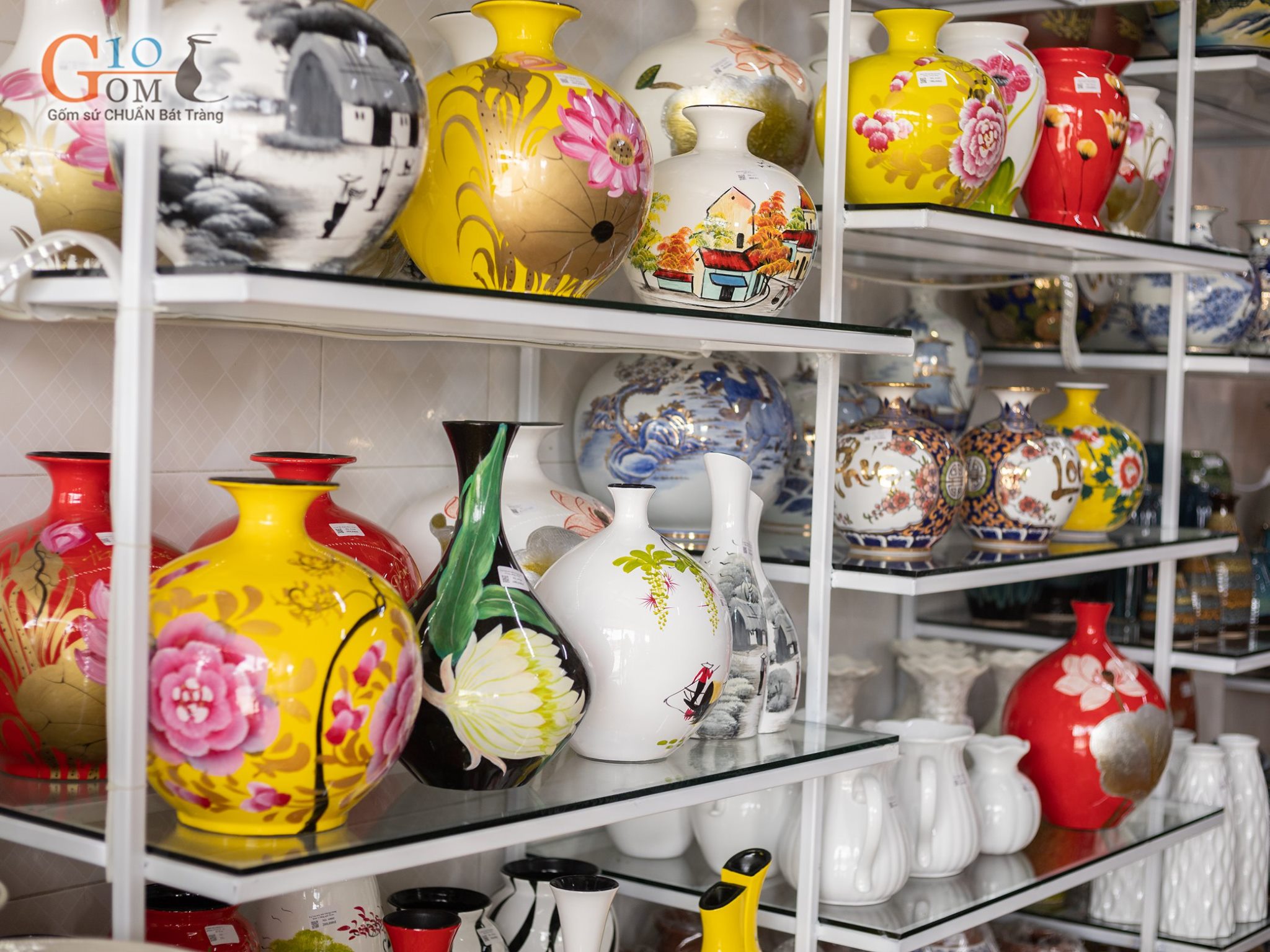 Tại Đại lý Hoàng Huy sẽ có đa dạng các dòng sản phẩm của Gốm 10 như: Đồ thờ cúng, Bát đồ ăn, ấm chém, Lộc Bình, Lọ hoa, Chum, Tượng, tranh gốm... với rất nhiều mẫu mã, kiểu dáng đẹp chắc chắn sẽ đem lại nhiều sự lựa chọn và sự hài lòng cho Quý khách hàng!