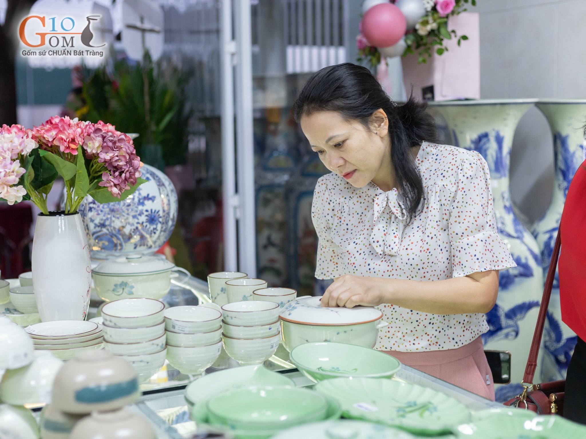 Trong ngày khai trương, rất nhiều khách hàng đã đến tham quan mua sắm, ai ai cũng rất háo hức ngạc nhiên, trầm trồ khi xem, cầm trên tay các sản phẩm Bát Tràng được cung cấp bởi Gốm 10. Đặc biệt Đại lý Hoàng Huy dành 1 tháng ưu đãi khuyến mãi 10-15% tất cả sản phẩm, và rất nhiều quà tặng từ Công ty Gốm 10, thời gian áp dụng đến hết 31/12/2020.