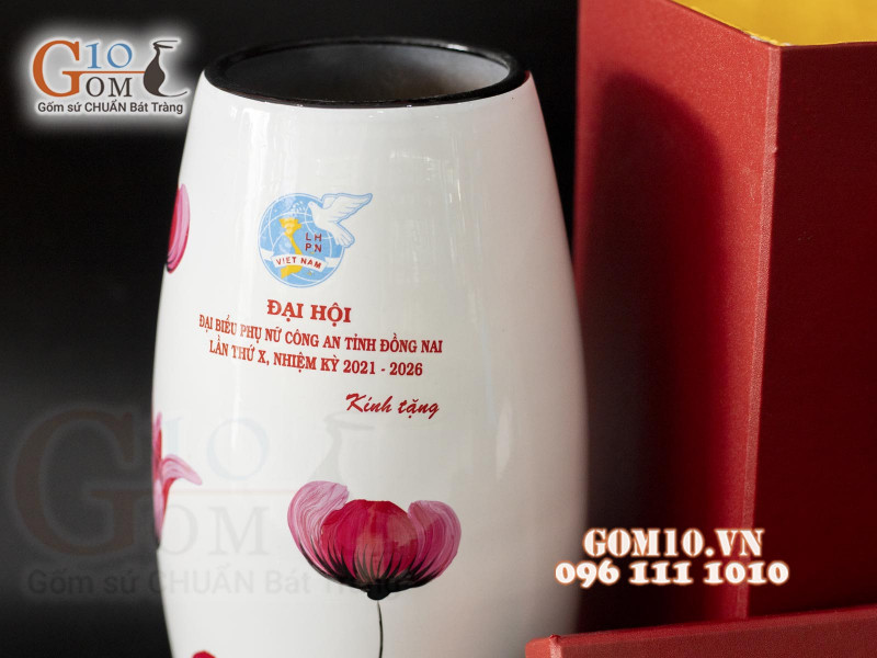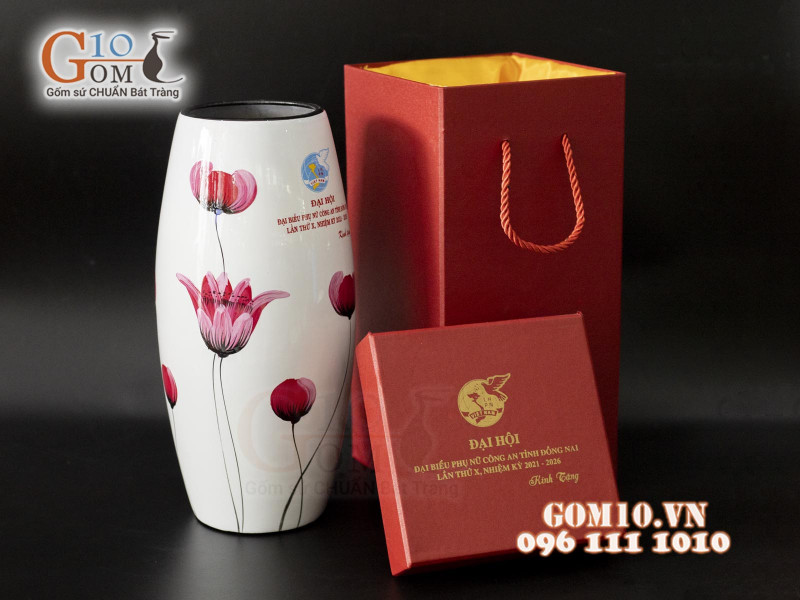 Ngày 27/10/2021, Được sự tin tưởng của quý khách hàng. Công ty TNHH Gốm 10 hoàn tất giao hàng hợp đồng hàng trăm lọ hoa sơn mài in logo quà tặng tới cho Công An tỉnh Đồng Nai để chuẩn bị cho Đại Biểu Phụ Nữ Công An Tỉnh Đồng