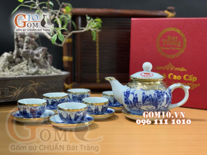 Hợp đồng sản xuất và in logo hàng trăm bộ ấm chén quả hồng trúc lâm thất hiền men lam cổ bọc đồng hoàn tất trong 1 tuần và tiến hành giao hàng đúng theo kế hoạch tặng quà của Công An huyện Tây Hòa.