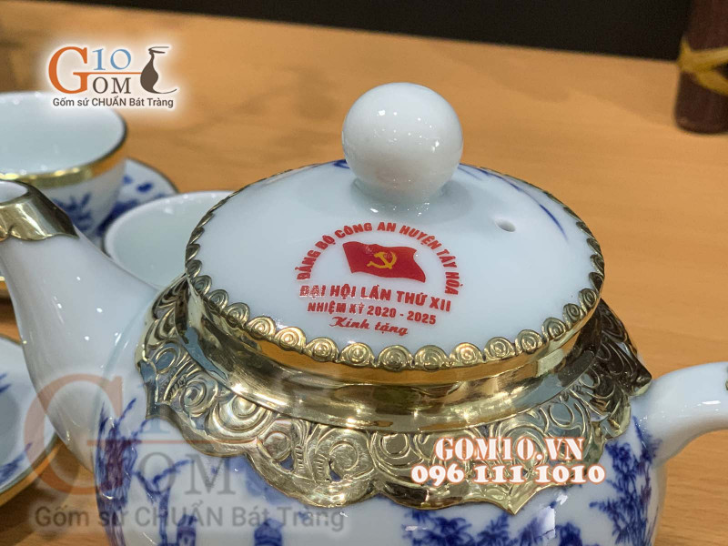 Gốm 10 tiến hành giao hàng bộ ấm chén in logo quà tặng, quà tặng ĐẢNG BỘ CÔNG AN HUYỆN TÂY HÒA
