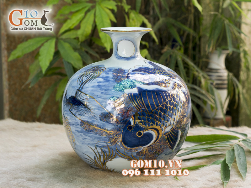 Bình tài lộc Lý Ngư Vọng Nguyệt mang thông điệp cuộc sống hạnh phúc an yên, công danh sự nghiệp thuận lợi như ý