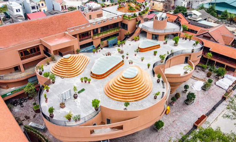 Ngoài ra, khu vườn trên mái vừa tạo cảnh quan đẹp, cũng là không gian xanh để thư giãn, giao lưu. Khối 4 tầng bên trong dành cho các hoạt động khác như nhà hàng, khu biểu diễn…