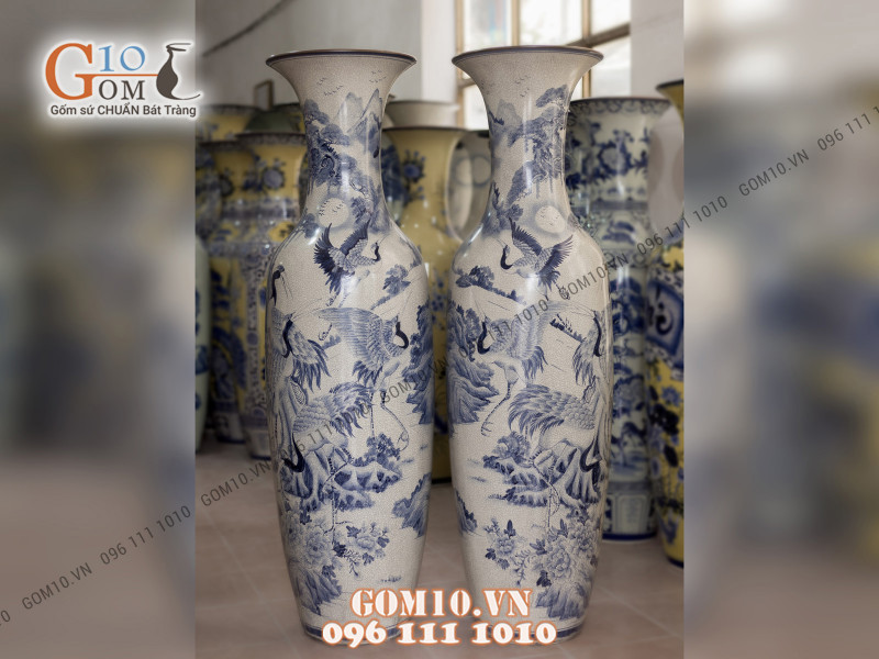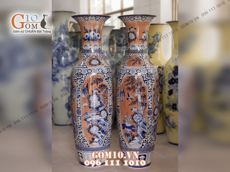 Đôi lộc bình men lam họa tiết Bách Nhi Đồ , cao 1m4 - vẽ Vàng 24k