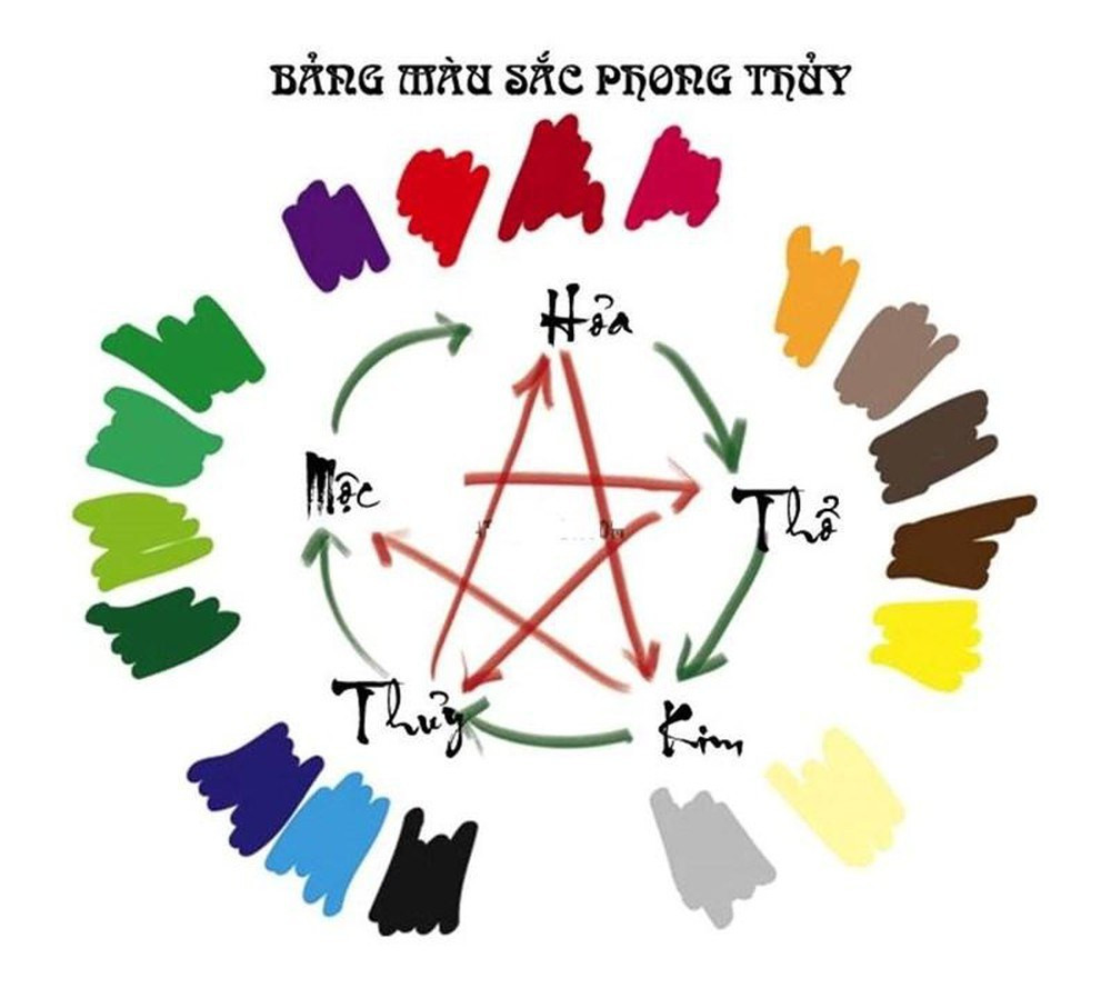 Bảng màu sắc phong thủy tương ứng ngũ hành