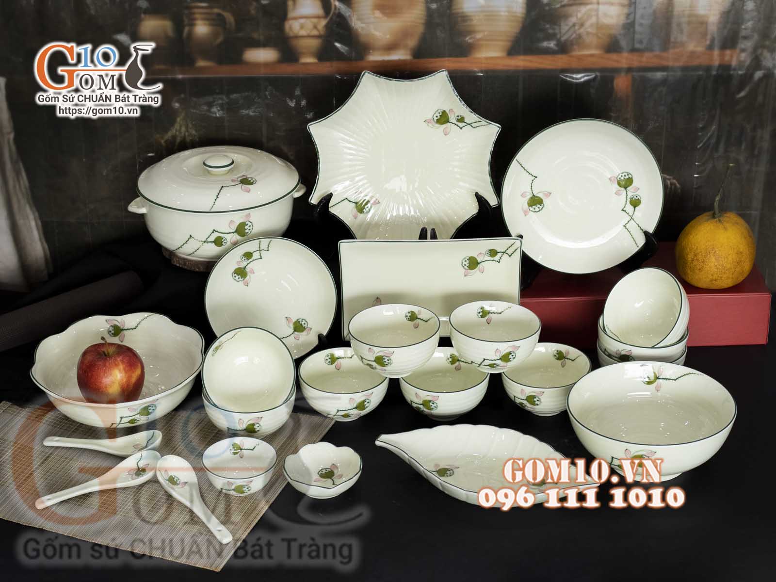 Bộ đồ ăn sen xanh, sen tràm, sen vàng.