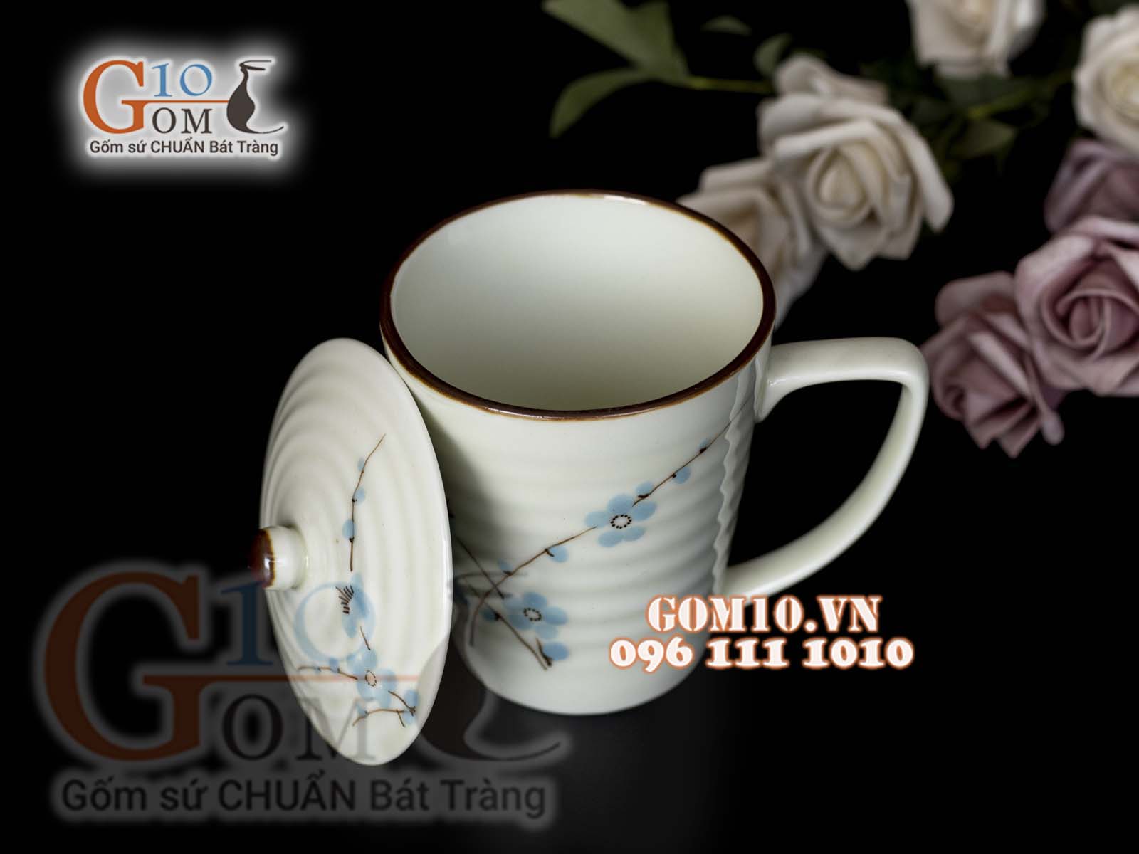 Cốc sứ uống nước văn phòng có 2 loại là cốc có nắp đậy và không có nắp đậy.