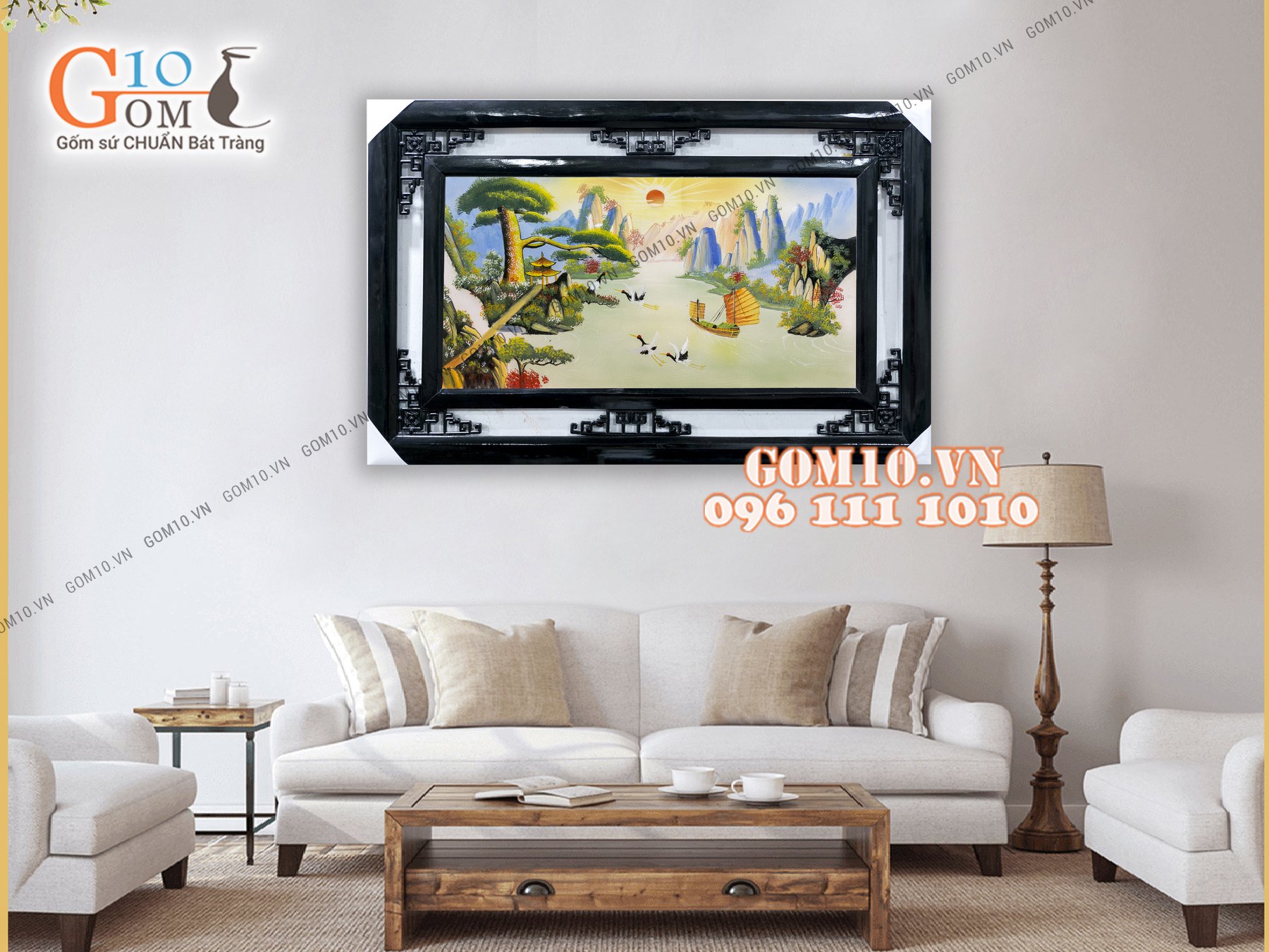 Tranh gốm sứ Bát Tràng dùng để trang trí phòng khách, phòng làm việc, hành lang ở nhà hàng hay quán ăn mang lại vẻ đẹp sang trọng và thanh nhã.