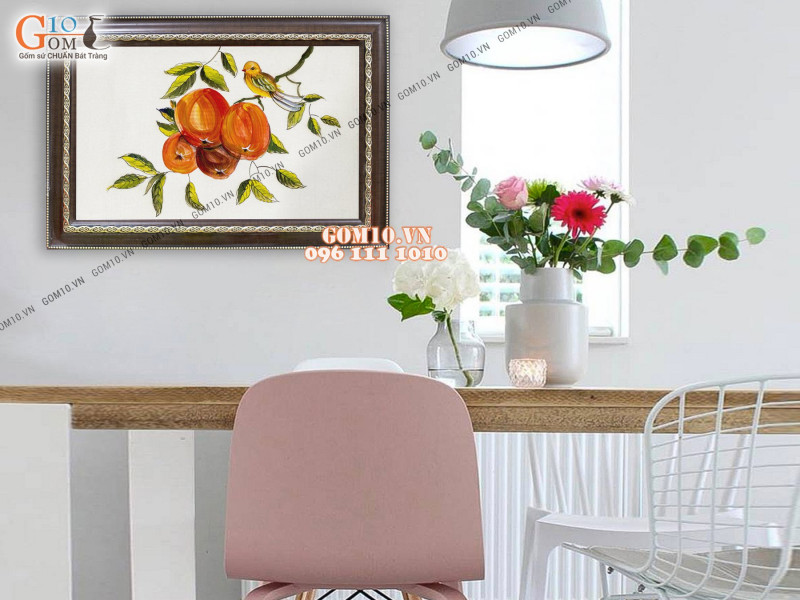 Tranh sứ cỡ nhỏ vẽ hoa cỏ, vẽ cảnh quan thiên nhiên Việt Nam rất hợp để treo ở phòng ăn, phòng ngủ.