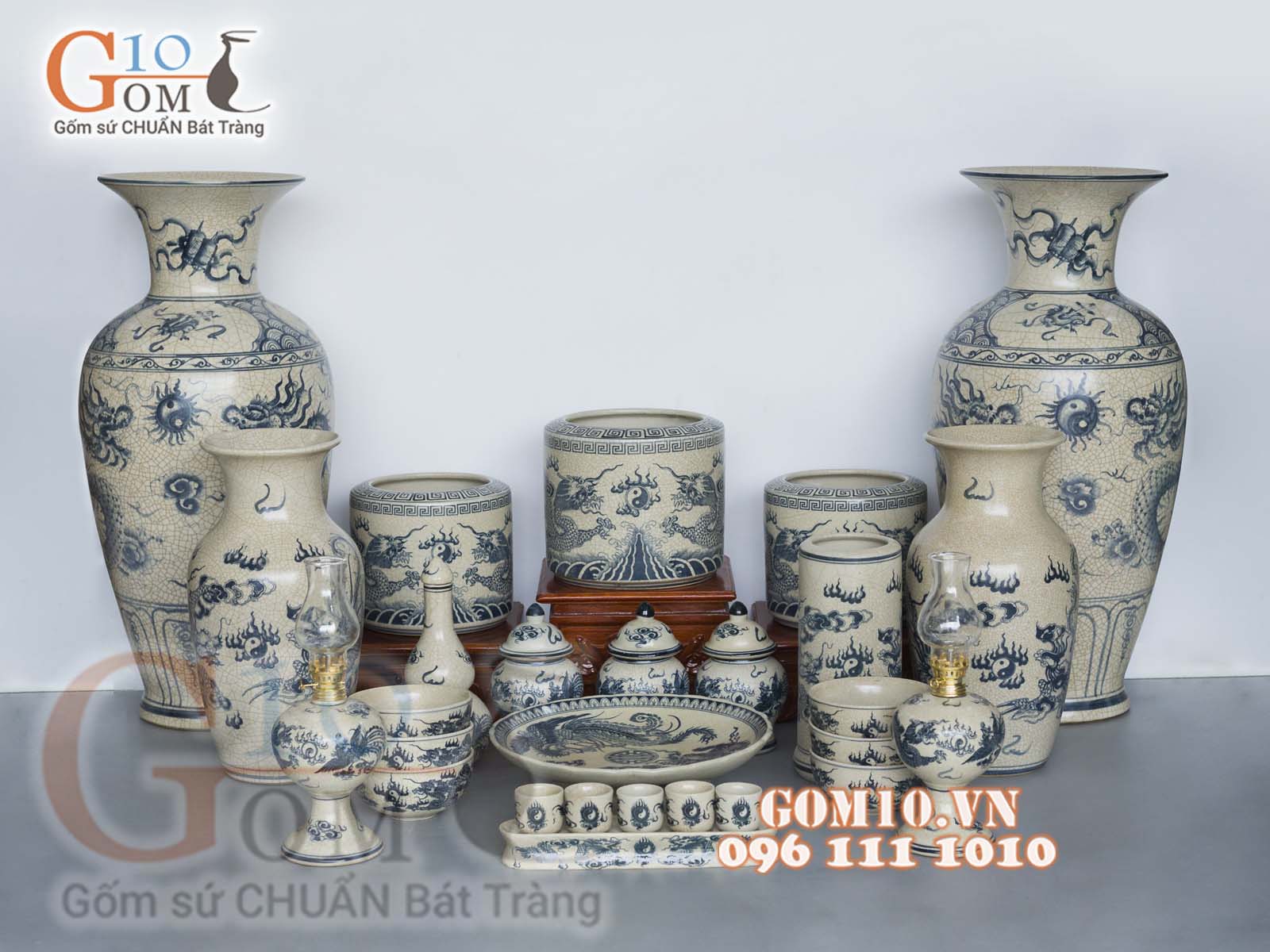 Đồ thờ cúng gốm sứ Bát Tràng. Người xưa thường có câu "Có thờ có thiêng, có kiêng có lành". Trong việc chọn lựa đồ thờ cúng cũng vậy. Mỗi món đồ đều mang những ý nghĩa và phát huy quyền năng sức mạnh riêng. Lựa chọn đồ thờ theo phong thủy, cũng như màu sắc đồ thờ có ảnh hưởng rất lớn đến vận mệnh gia chủ. Nếu lựa chọn món đồ hợp mệnh sẽ đem đến nhiều may mắn, bình an, thu tài lộc cho gia chủ.