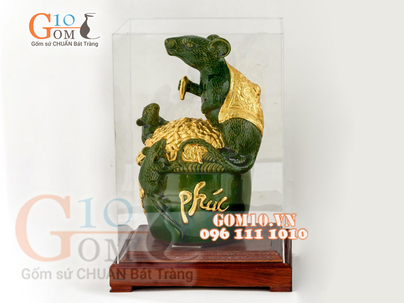 Tượng linh vật Chuột Sa Chĩnh Gạo dát vàng màu xanh ngọc
