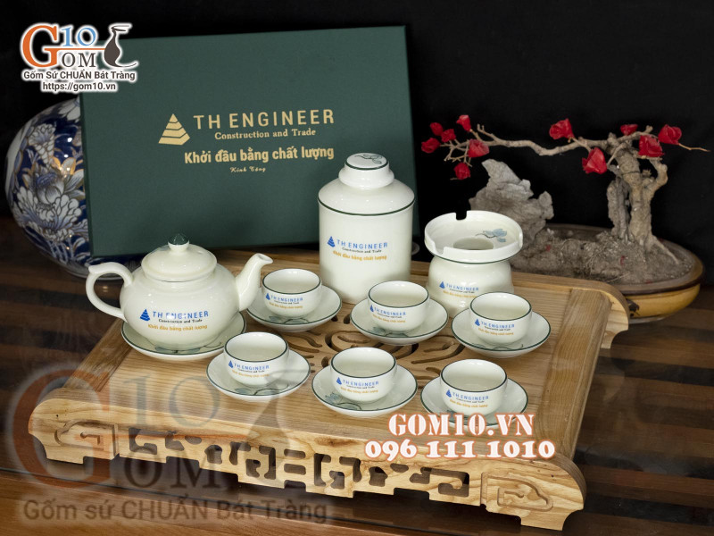 Đừng lo lắng vì Gốm 10 mang đến cho bạn giải pháp tuyệt vời trong vấn đề đặt mua sản phẩm ấm chén Bát Tràng in logo. Sản phẩm của Gốm 10 được sản xuất ngay tại lò Bát Tràng. Mỗi sản phẩm gốm sứ đều được chăm chút tỉ mỉ bởi bàn tay của các nghệ nhân lành nghề.