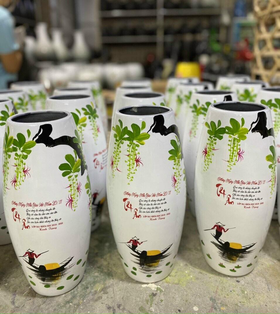 Bình hoa gốm sứ Bát Tràng có nhiều màu sắc và nhiều kiểu thiết kế khác nhau. Nếu học trò là người sâu sắc, sẽ nhận ra được tặng bình gốm sứ Bát Tràng là mình đang mong cho thầy cô sẽ luôn được hạnh phúc, bình yên. Dù hoa có tàn thì bình hoa vẫn tươi xinh và có thể thay hoa mỗi ngày để cuộc sống của thầy cô thêm nhiều sắc màu và có nhiều thành công hơn.