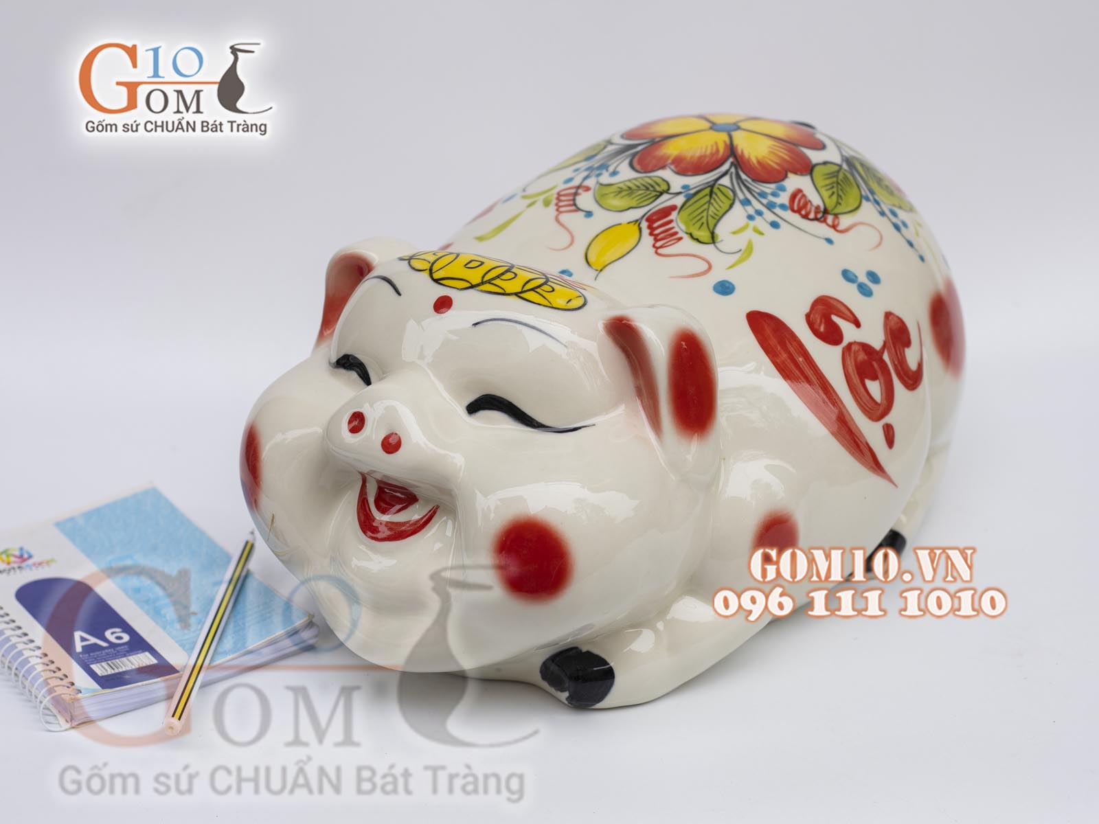 Điểm đặc biệt, heo sứ Gốm Sứ Bát Tràng khá dày dặn, khó nứt, mẻ, vỡ. Họa tiết hoa văn trang trí, màu sơn được vẽ dưới một lớp men sau đó đem nung với nhiệt độ trên 1000*C nên rất bóng mượt và rất dễ vệ sinh, chỉ cần lau đi là như mới. Hơn nữa sản phẩm nung ở nhiệt độ cao đảm bảo cho chất lượng của sản phẩm khi ra đời, an toàn khi sử dụng (khử hết chì và các độc tố khác).