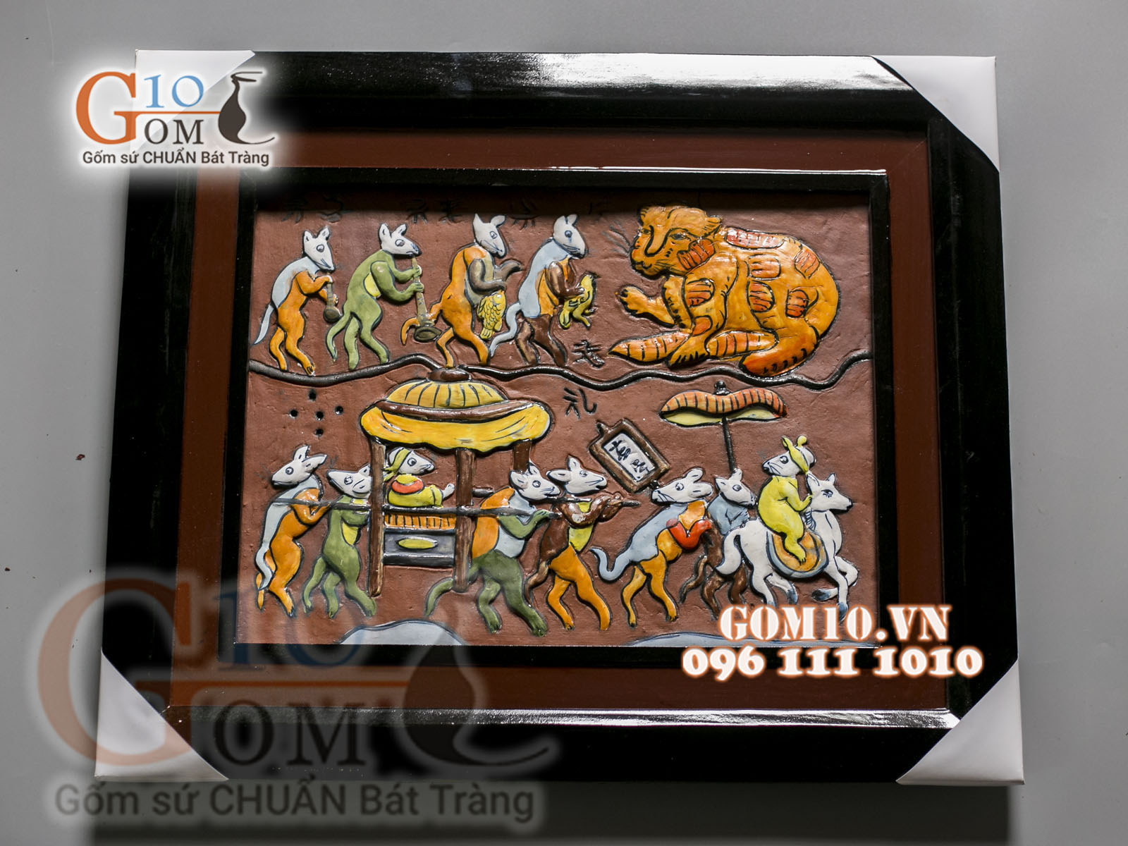 Tranh gốm đất đỏ họa tiết Đám cưới chuột