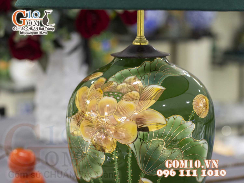 Đèn bàn gốm sứ Bát Tràng cao cấp là loại đèn được sản xuất thủ công hoàn toàn, quy trình chế tác tỉ mẩn theo từng công đoạn chọn và tinh lọc đất làm gốm, tạo hình tạo dáng cho thân đèn, phơi sấy sửa hàng mộc và trang trí hoa văn, sau đó là tráng men, nung đốt.