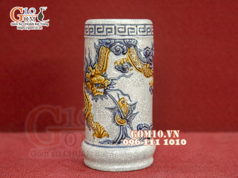 - Ống cắm hương: Ống hương hay còn được gọi là ống cắm hương được dùng để đựng hương hoặc đũa thờ và thường đặt trong cùng của góc trái bàn thờ. Tùy vào kích thước bàn thờ gia tiên mà gia chủ lựa chọn kích thước ống hương cho phù hợp.