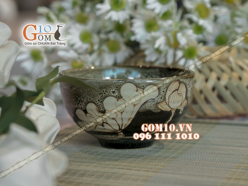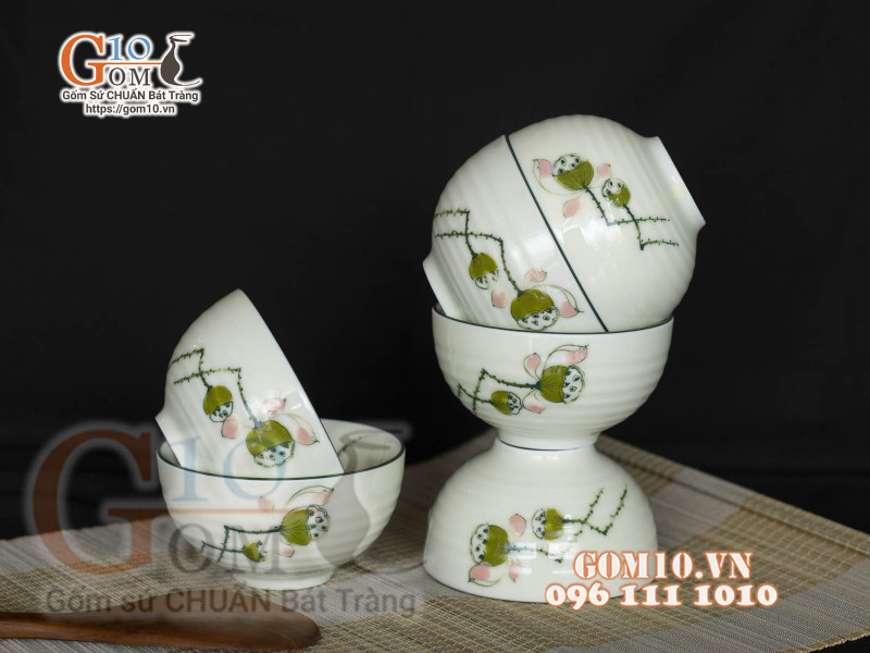 Đầu tiên phải kể đến mẫu bát ăn cơm men kem vẽ hoa sen Bát Tràng. Sản phẩm được tạo nên từ chất đất cao cấp tạo nên sản phẩm có màu kem trong trẻo, đẹp mắt. Họa tiết hoa sen mềm mại, tinh tế, bắt mắt rất phù hợp với không gian bếp của gia đình bạn.