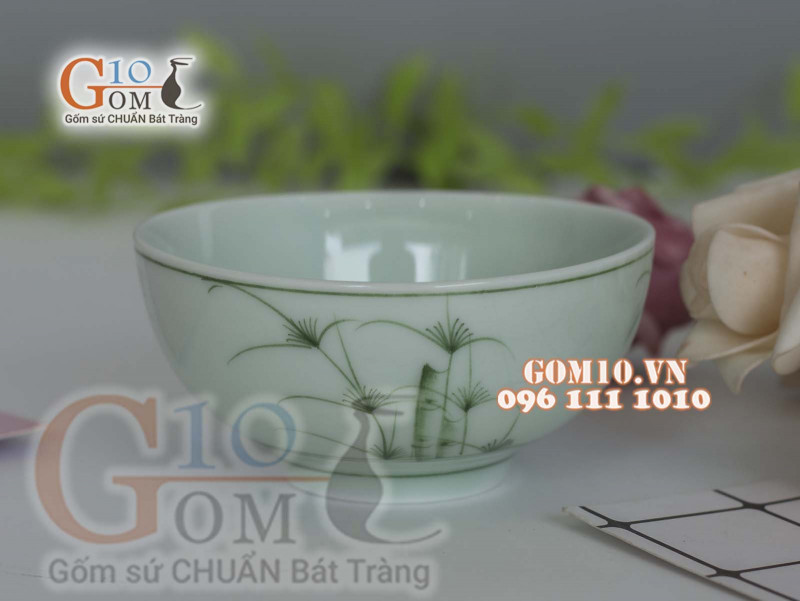Mỗi một bộ bát ăn cơm vẽ trúc, bạn nhìn thấy ở đó là sự sáng tạo từ đề tài cây trúc xanh. Chỉ là những chiếc lá, thân cây gân guốc nhưng khi thành phẩm hiện lên trên mặt bát thì lại toát lên vẻ đẹp tinh xảo đến lạ. Bữa cơm gia đình cũng trở nên ngon miệng hơn nhờ những sản phẩm tuyệt vời này.