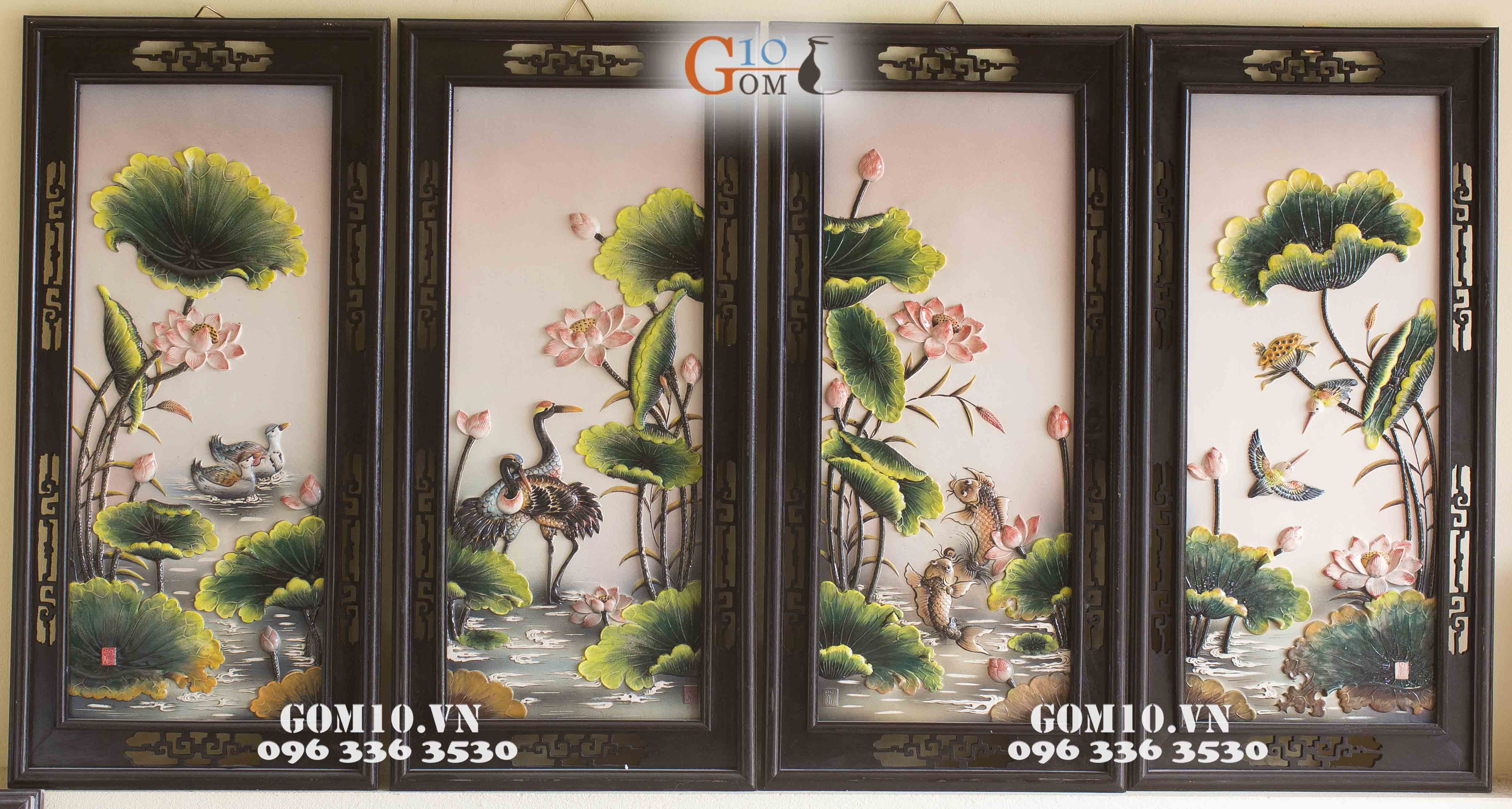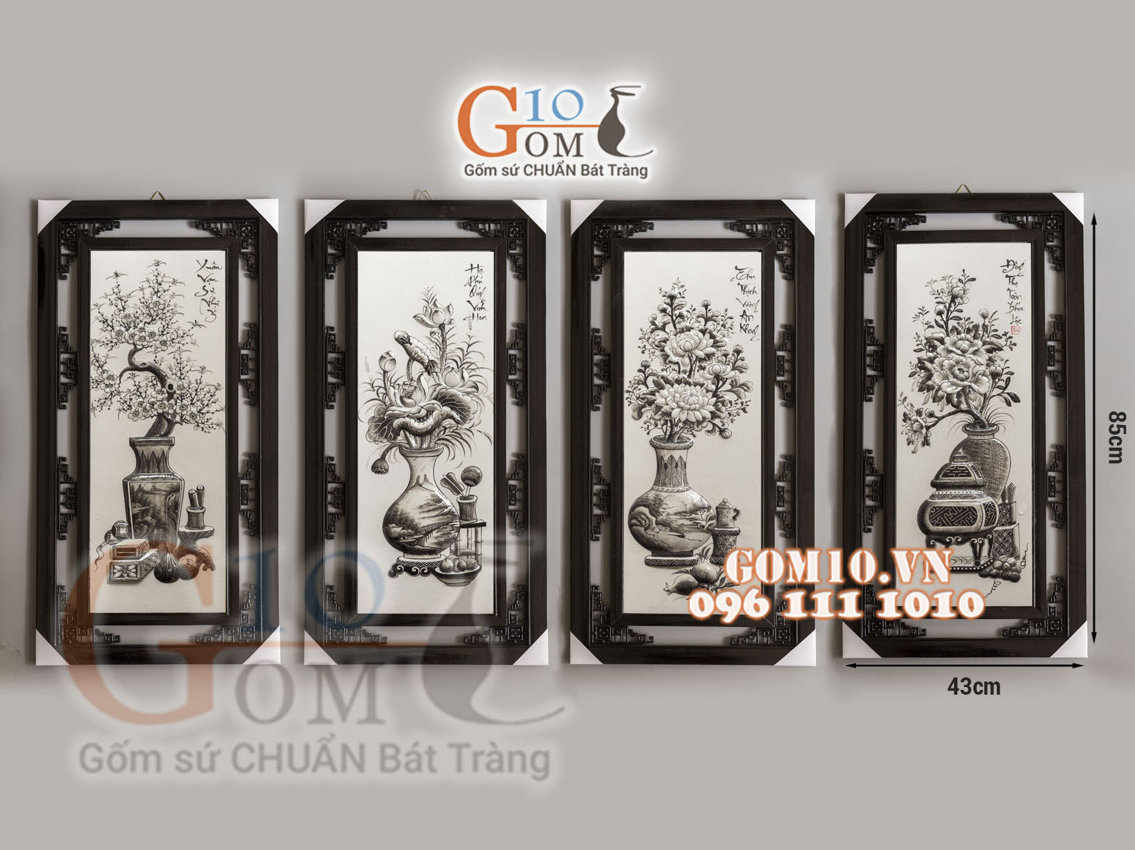 Tranh sứ bộ mang đậm ý nghĩa phong thủy với họa tiết đa dạng như Tùng Cúc Trúc Mai, Long Lân Quy Phụng, Lý Ngư Vọng Nguyệt, tranh Phúc – Lộc – Thọ, tranh Cổ đồ, tranh Tứ quý, Tứ Linh,… với kích thước khác nhau và đặc biệt có thể đặt vẽ theo nhu cầu của quý khách.