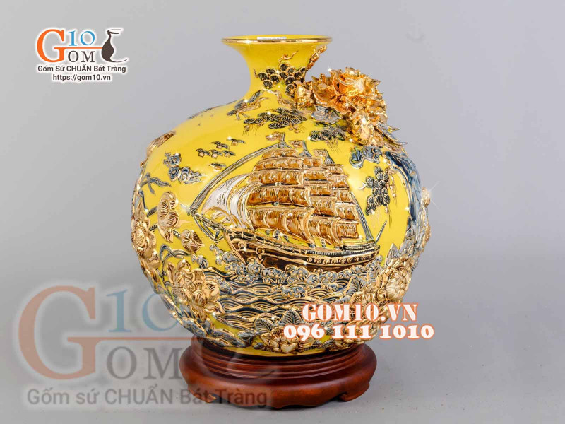 Bình hút tài lộc Bát Tràng là tặng phẩm phong thủy bằng gốm sứ Bát Tràng, cao cấp, mẫu mã đẹp mắt, ấn tượng. Chưa dừng lại ở đó họa tiết phong thủy như Thuận Buồm Xuôi Gió, Công Đào, Mã Đáo Thành Công…đem lại nhiều lời chúc thân tình, may mắn dành cho chủ nhân sở hữu.