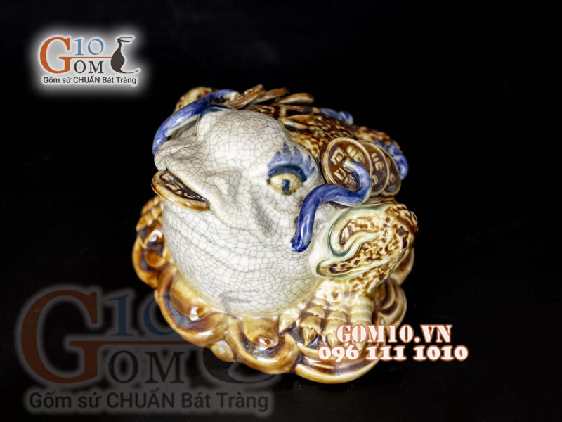 Thiềm thừ gốm sứ phong thuỷ được các nghệ nhân Bát Tràng chế tác tinh xảo, sắc nét từng chi tiết nhỏ. Khi thỉnh tượng thiềm thừ phong thuỷ, gia chủ Canh Ngọ nên lưu ý quay đầu tượng hướng vào bên trong hay hướng về các tượng thần, để thu hút tài lộc, phú quý vào nhà.