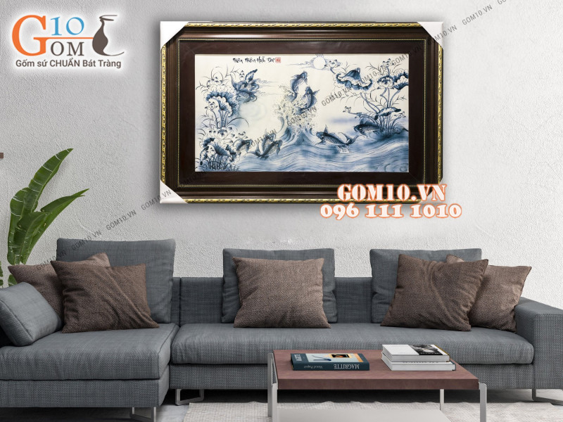 5. Trang trí phòng khách bằng Tranh treo tường gốm sứ