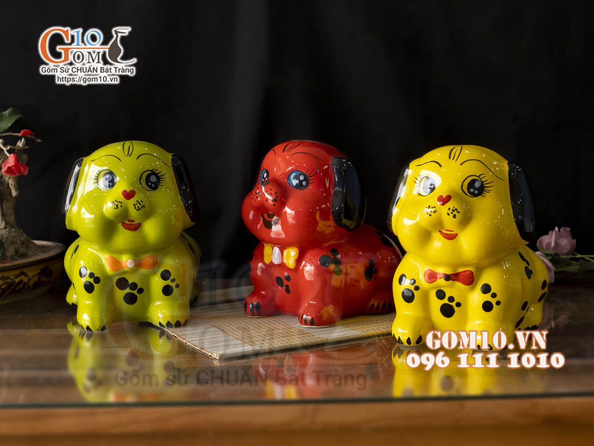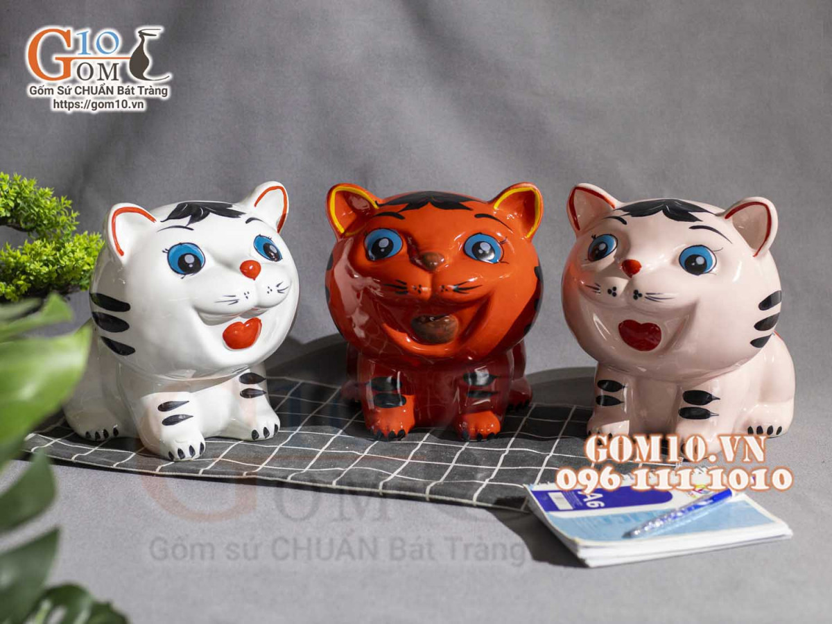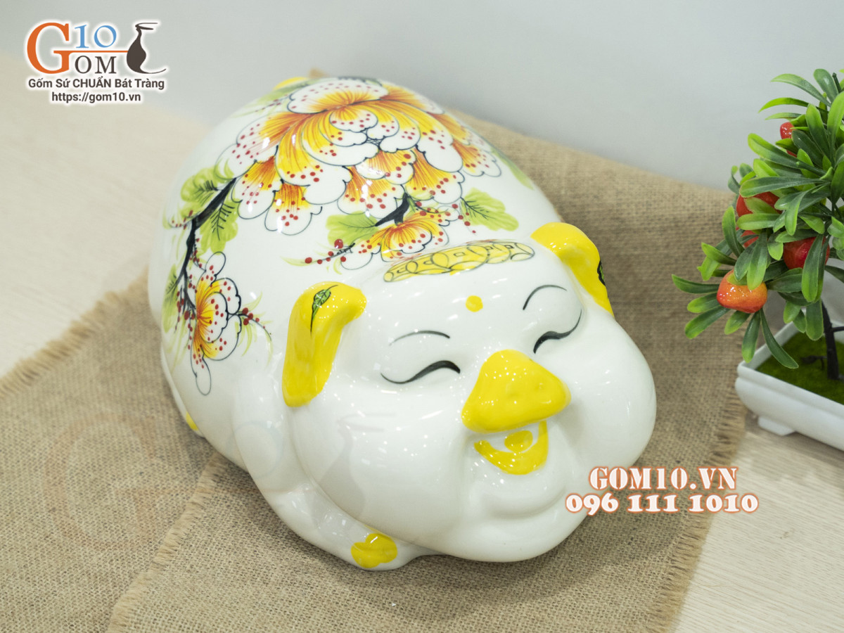 Con heo đất có hình dáng đầu tròn được làm bằng nguyên liệu sứ của làng nghề gốm, có nhiều màu sắc khác nhau, trên lưng có một đường xẻ vừa vặn để thả những đồng xu hay những phong bao lì xì.