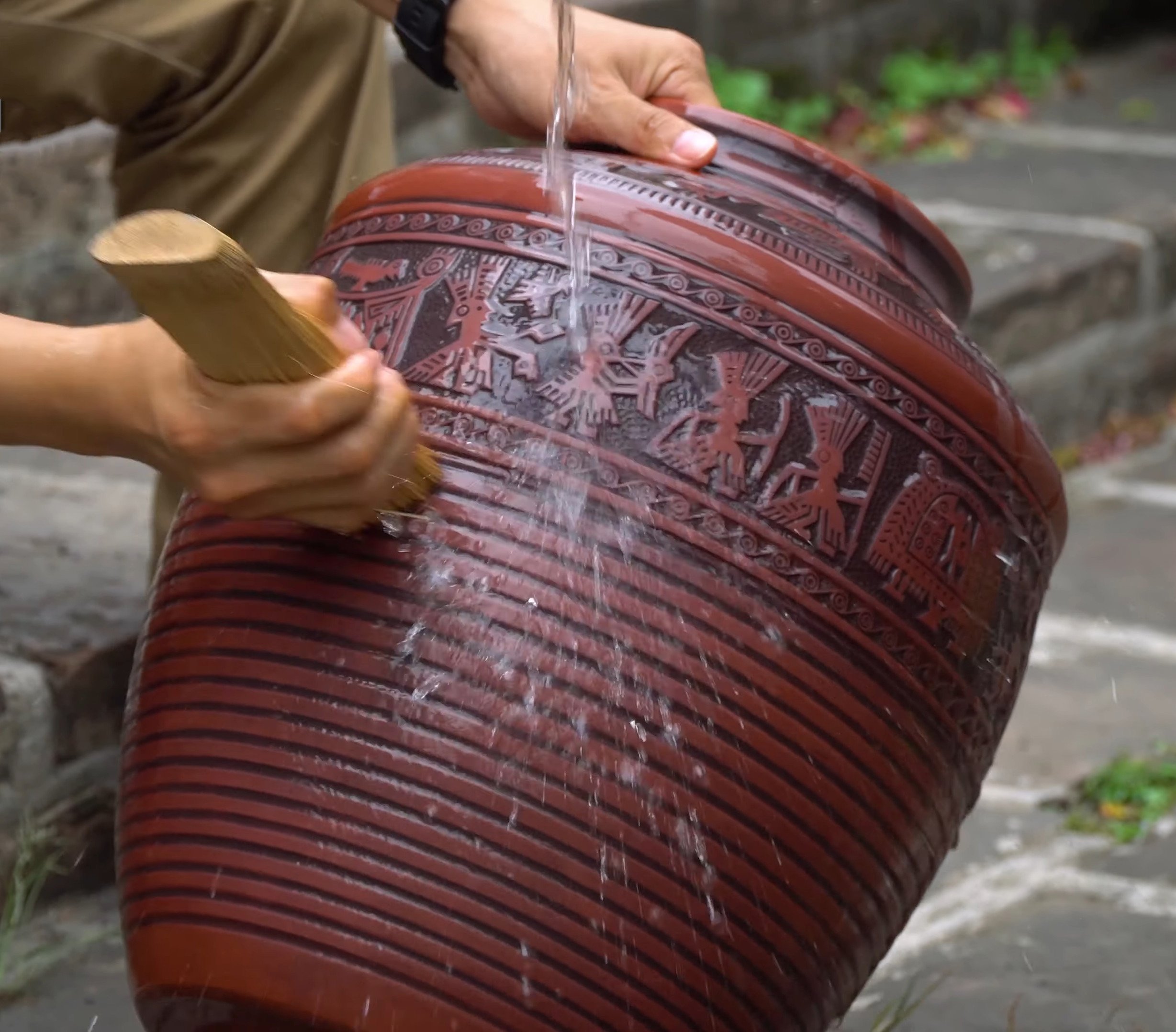 2. Cách cọ rửa chum với chổi tre chuyên dụng