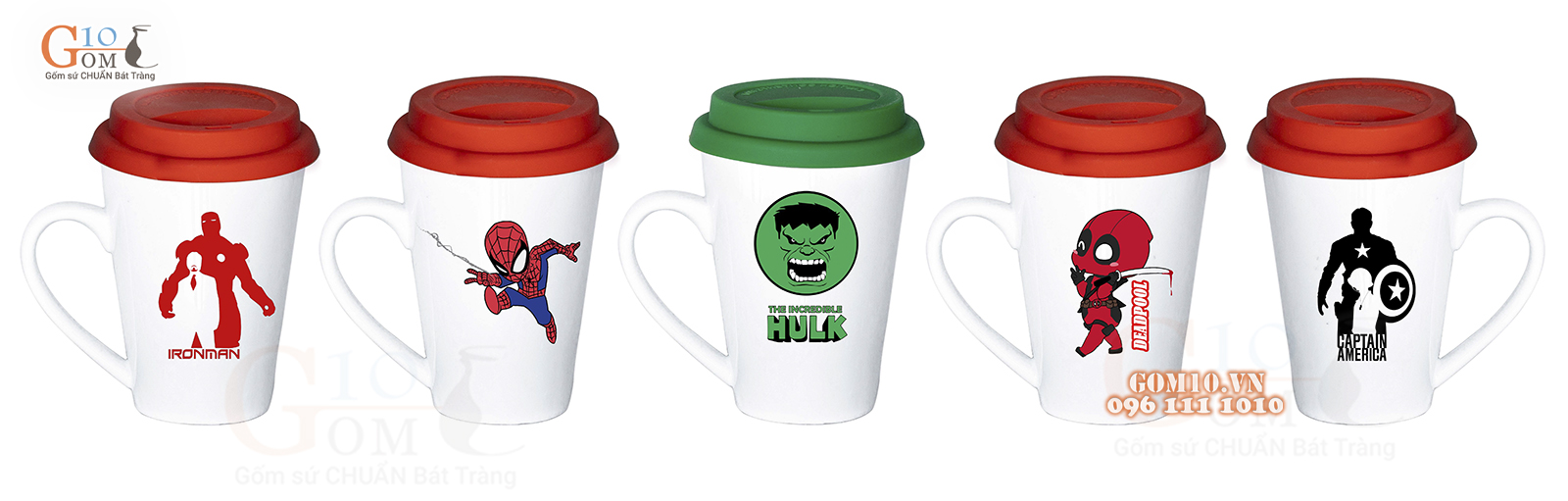 Cốc sứ bát tràng in hình ngộ nghĩnh được thiết kế với kiểu dáng vừa vặn, tay cầm chắc chắn, mặt cốc được in hình ảnh các nhân vật với màu sắc nổi bật, như Iron man, superman, hulk, deadpool, captain...
