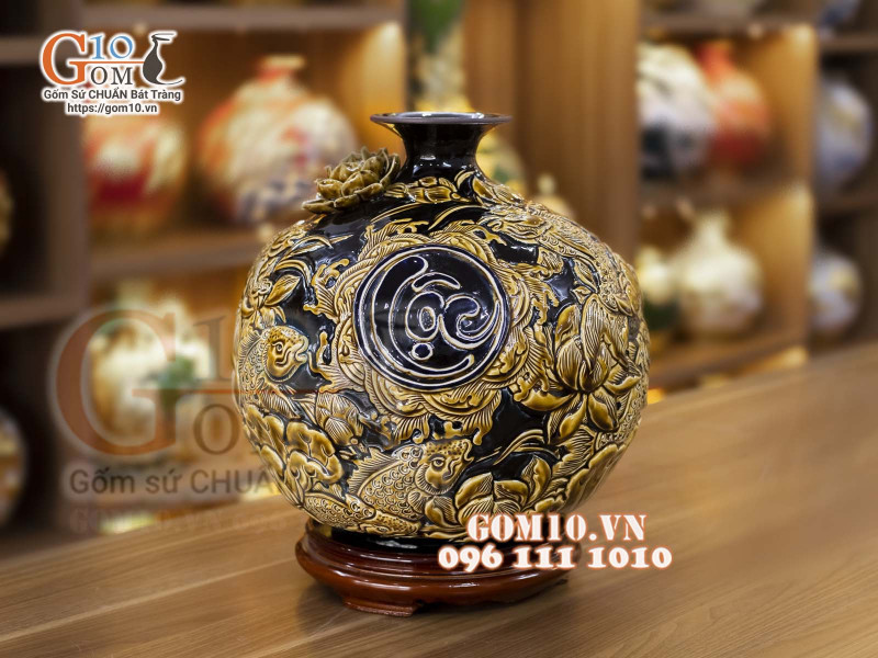 Bình hút lộc men màu đắp nổi Phú Quý Tài Lộc Thích hợp làm món quà tặng sang quý và ý nghĩa