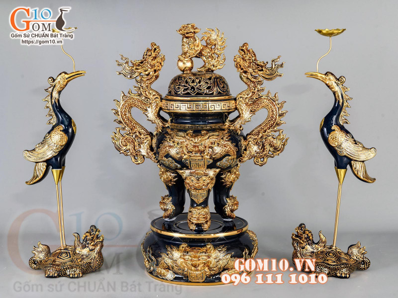 Bộ đỉnh hạc Bát Tràng mang những nét đặc trưng riêng mà khó đồ gốm nào có thể sánh được: