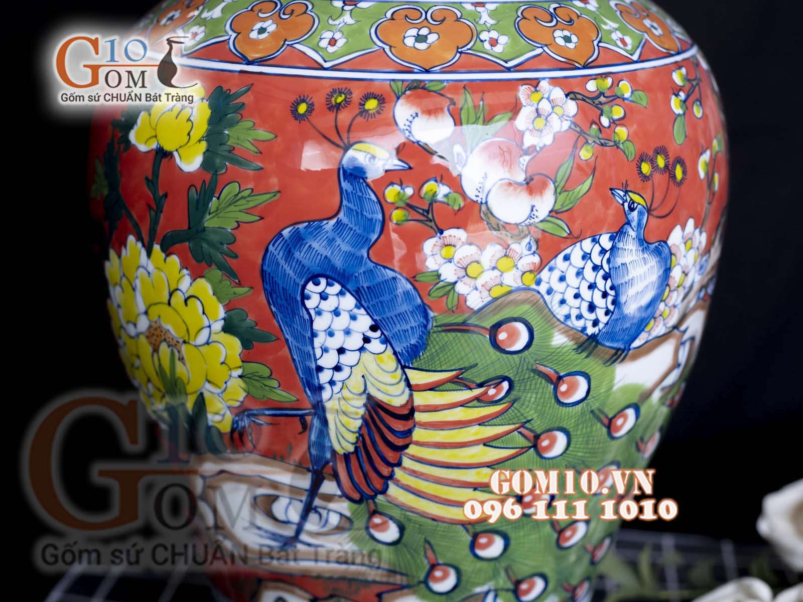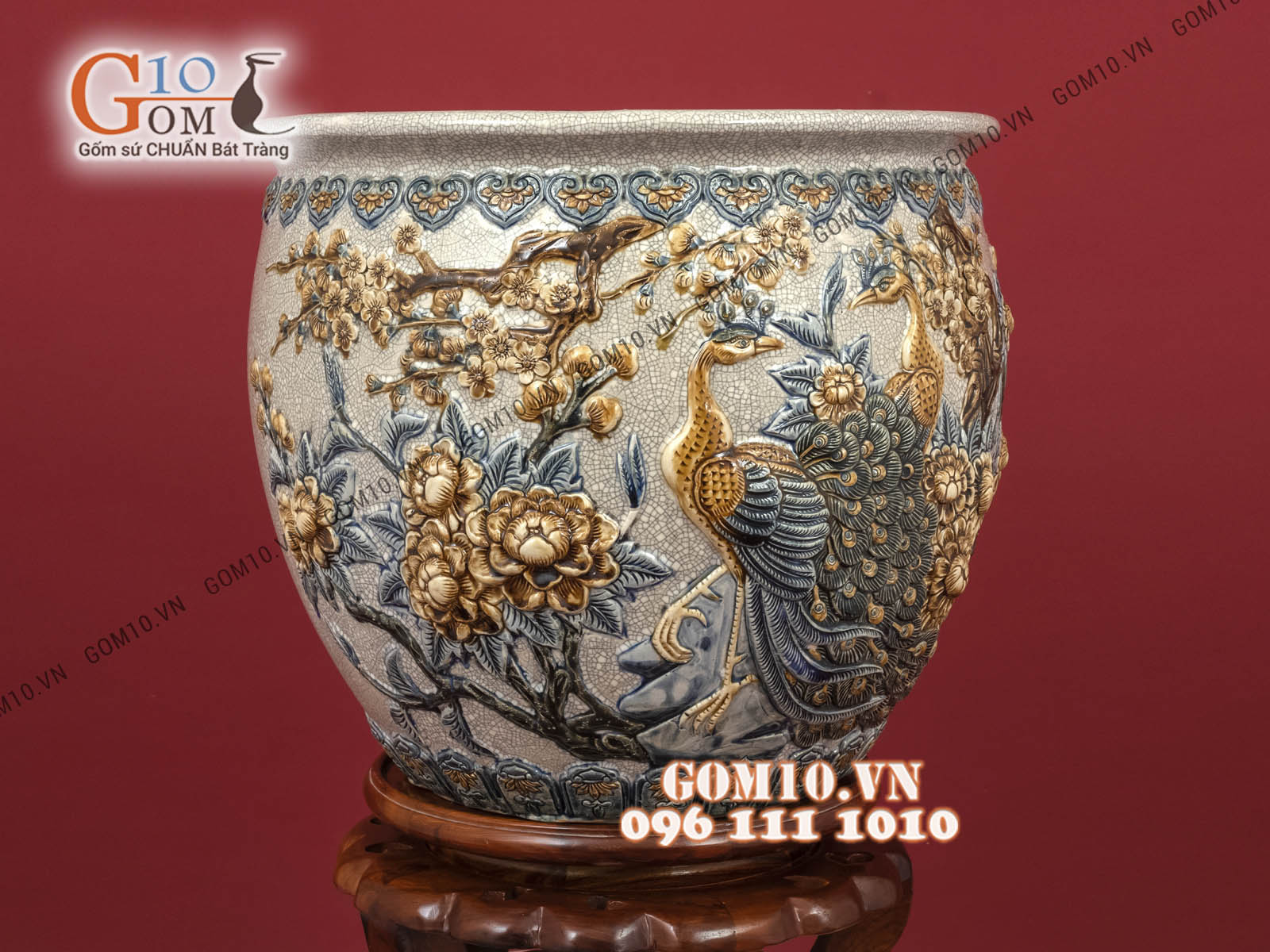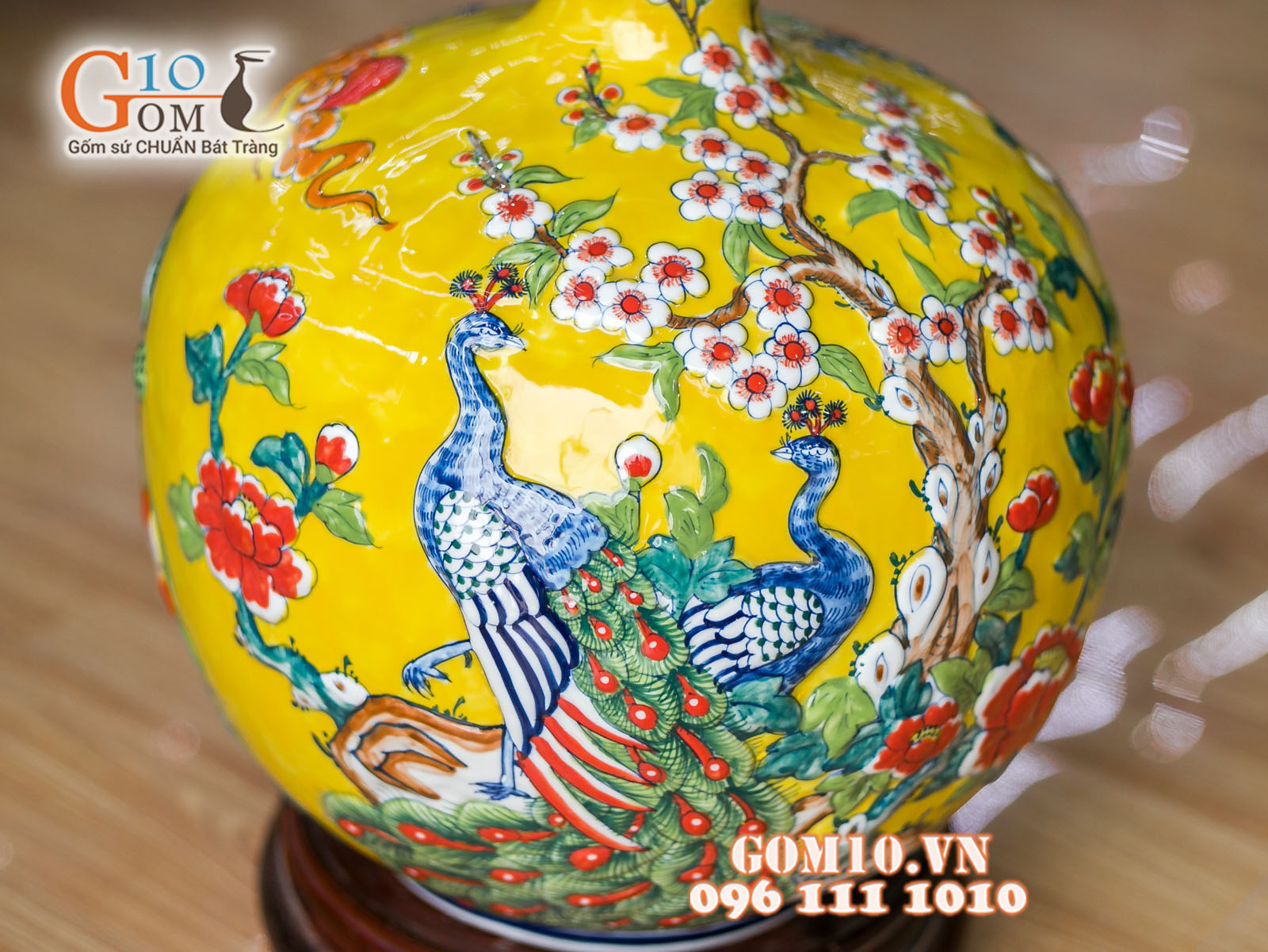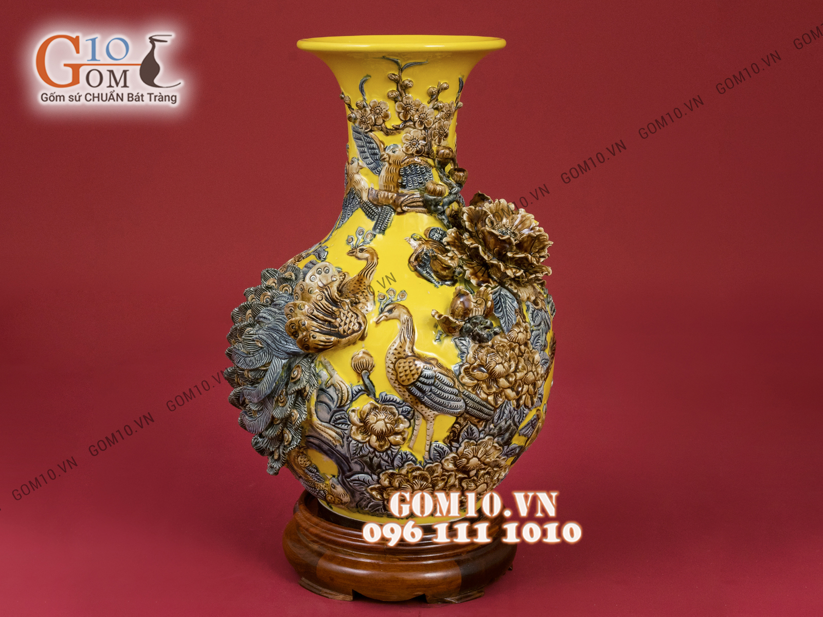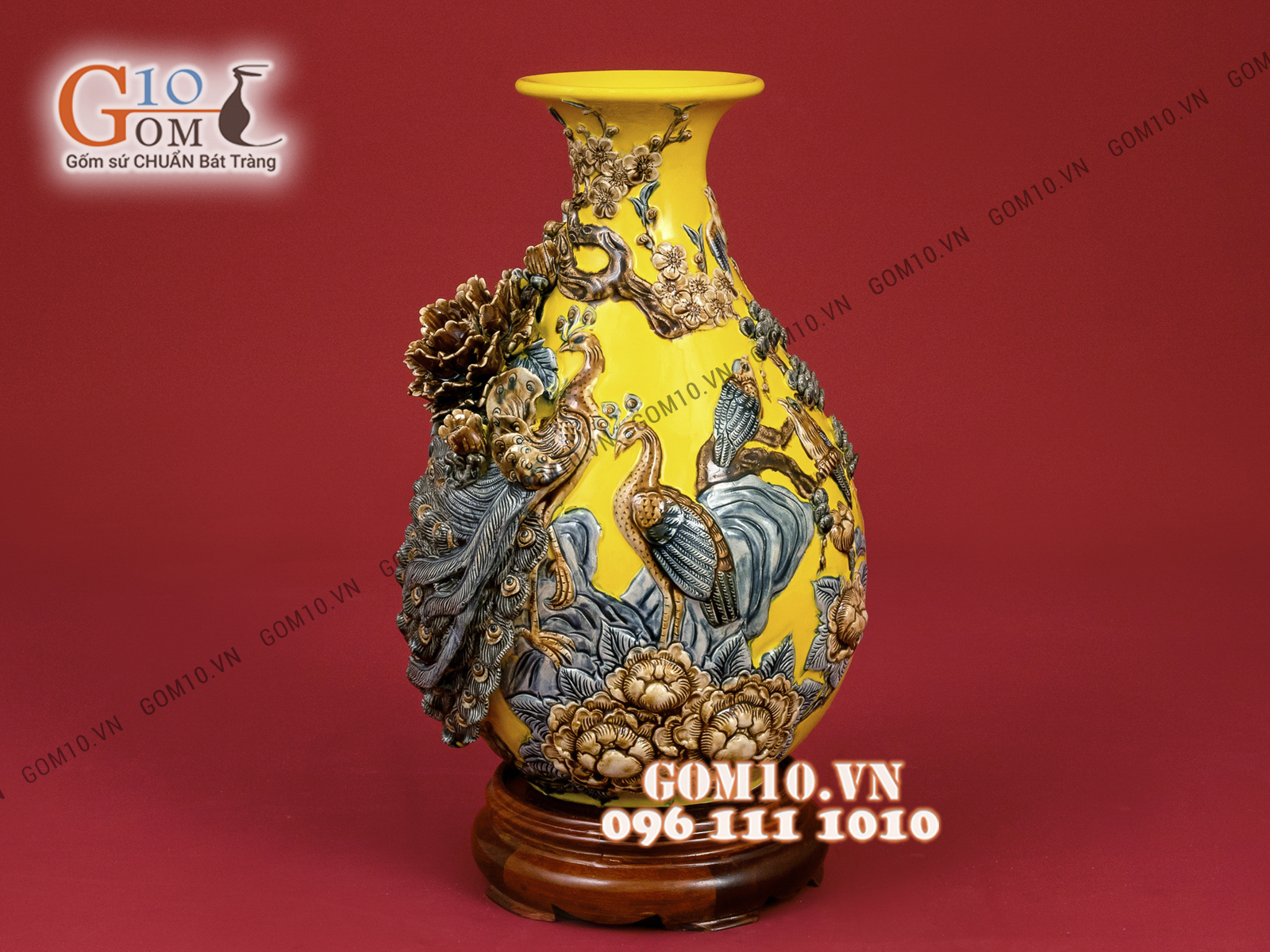 Dưới đây là một số mẫu bình phong thủy họa tiết Tứ Quý Khổng Tước tại Gốm 10: