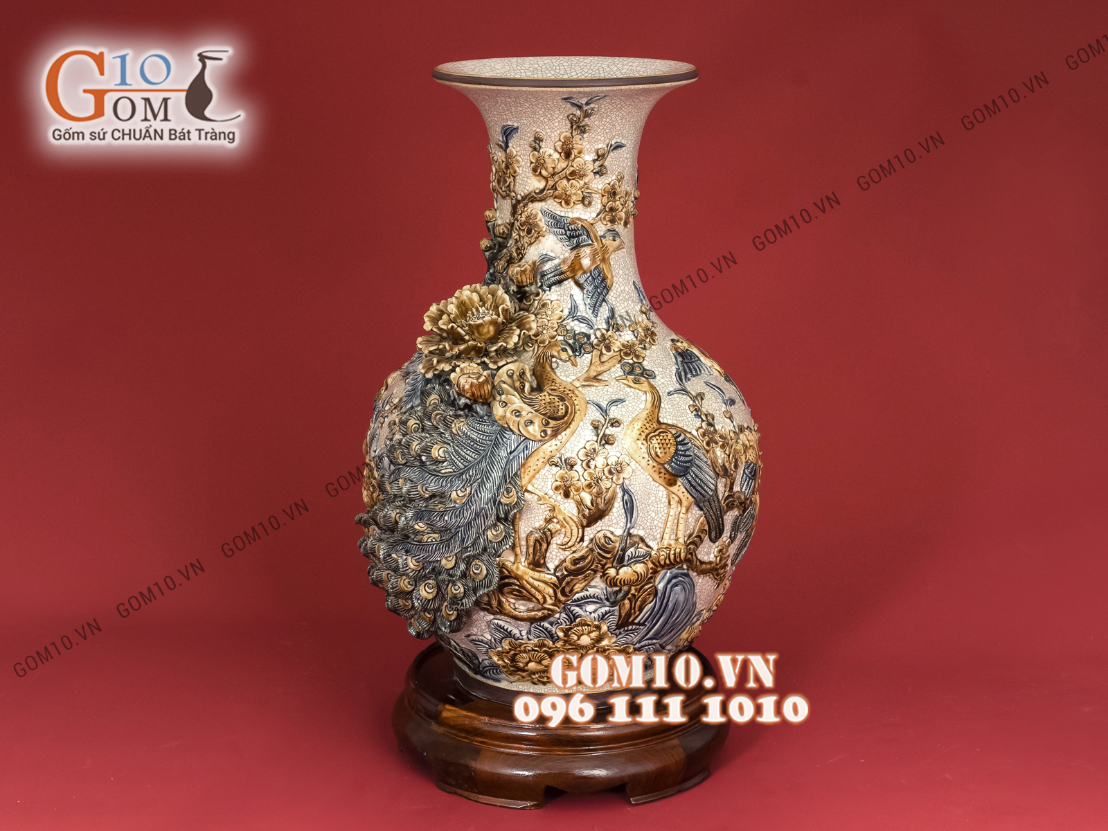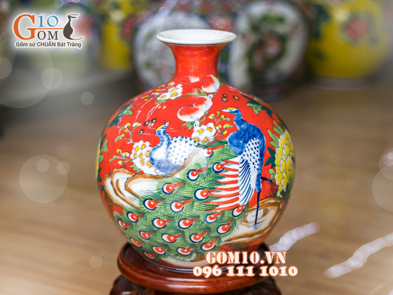 Hiện nay các mẫu gốm sứ phong thủy nói chung hay là các mẫu bình sứ trang trí, bình tài lộc với họa tiết Tứ Quý Khổng Tước đang được rất nhiều khách hàng ưa thích và săn tìm. Với sự tài hoa và đôi bàn tay khéo léo của các nghệ nhân làng gốm Bát Tràng đã sáng tạo ra được rất nhiều các mẫu mã, kiểu dáng cũng như màu sắc cực kì đẹp mắt và cuốn hút.