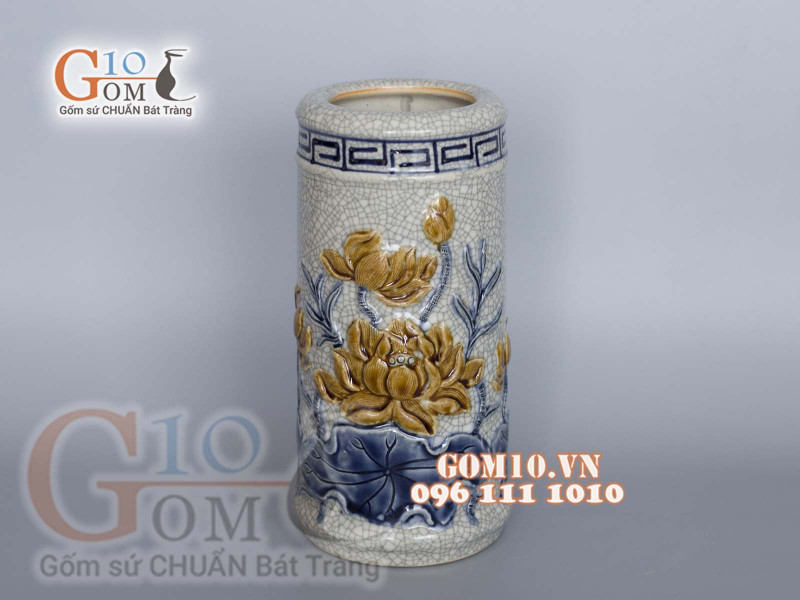Ống hương men rạn cổ đắp nổi hoa Sen cao cấp Bát Tràng